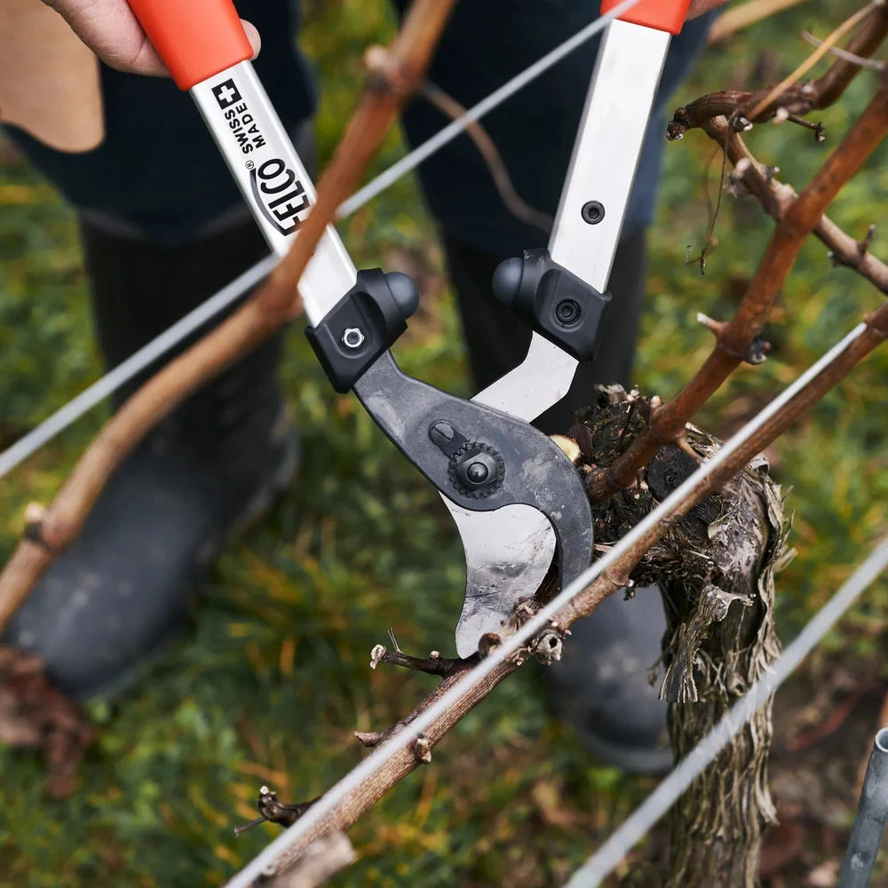 The Felco 211-40 has lightweight aluminum handles and the blade and screw-mounted anvil blade made of high-quality Swiss steel. This lopper produces a clean, precise cut and has aneasy, durable cutting adjustment, The curved cutting head is designed for easier pruning work as well as the Felco 211-40 has shock absorbers that protect wrists and arms. The handles are covered with non-slip coating. Replacement parts are available.