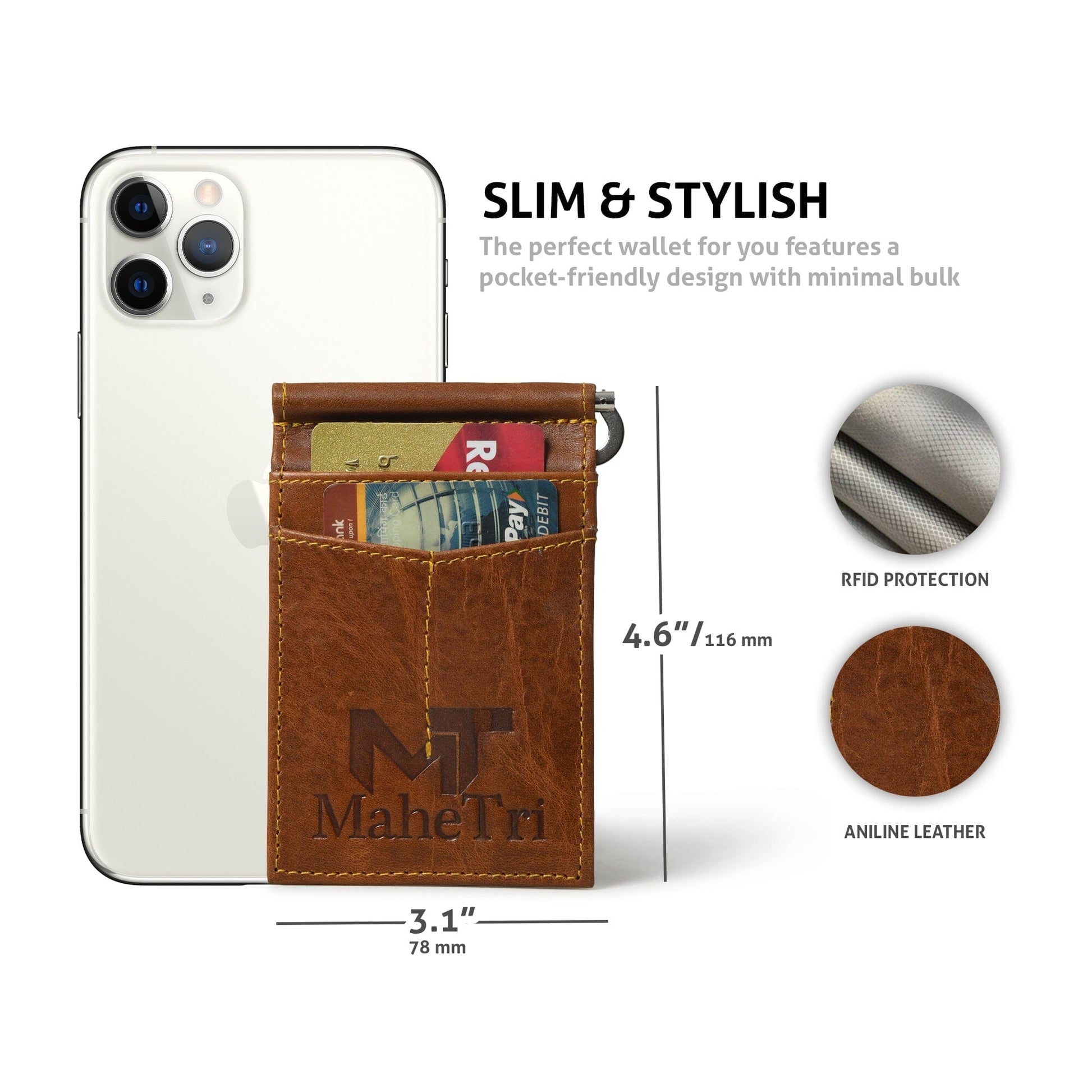 A beautifully crafted very slim profile money clipper wallet for men. It is handcrafted from buffalo leather by highly skilled artisans. This money clipper wallet features a few card slots, an Id slot, and an interior money clip that keeps the cash organized and safe.