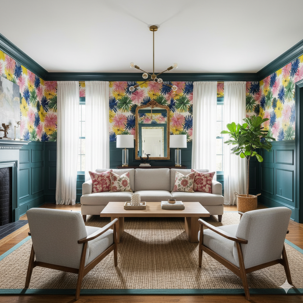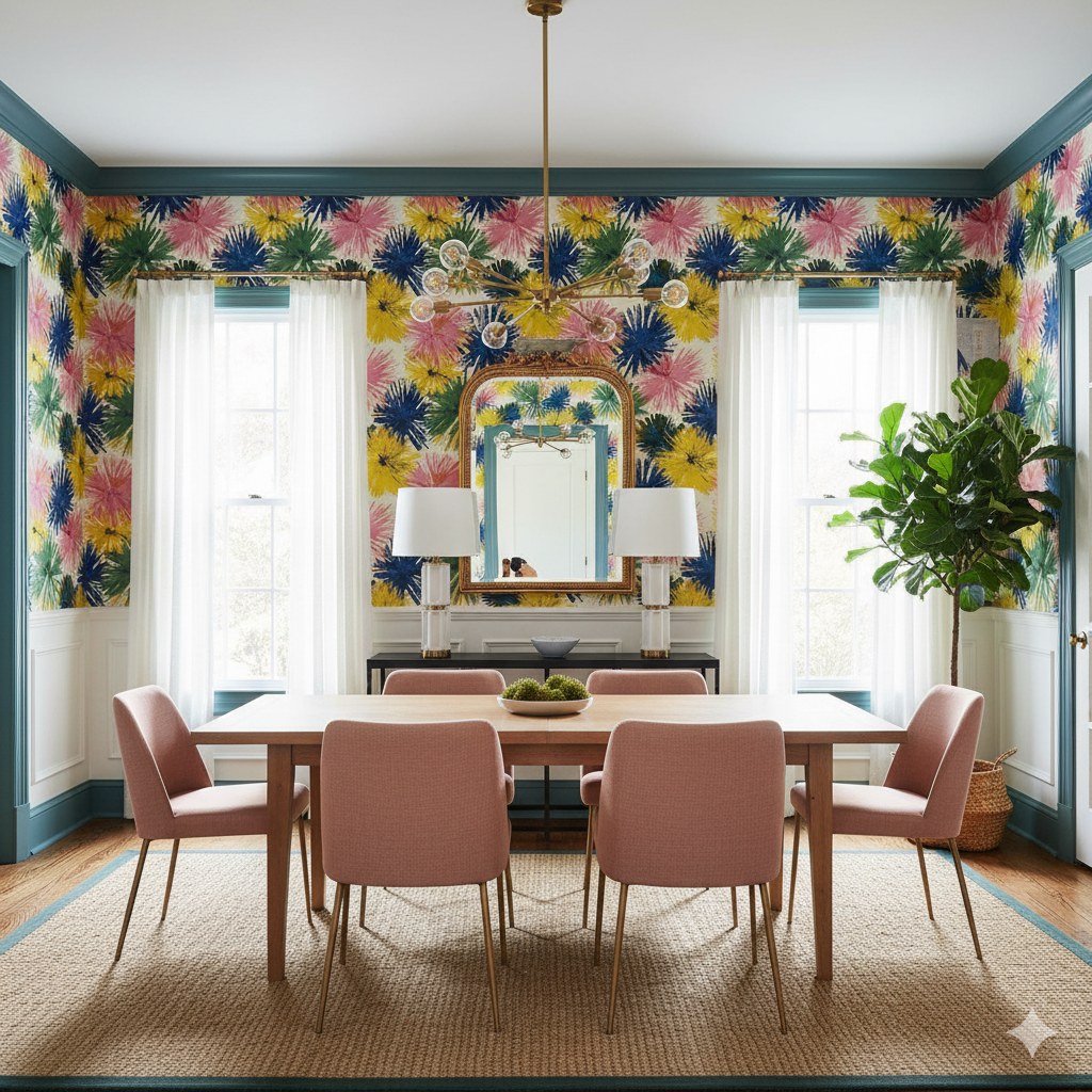 Wallpaper pattern is 24" x 24" repeat.