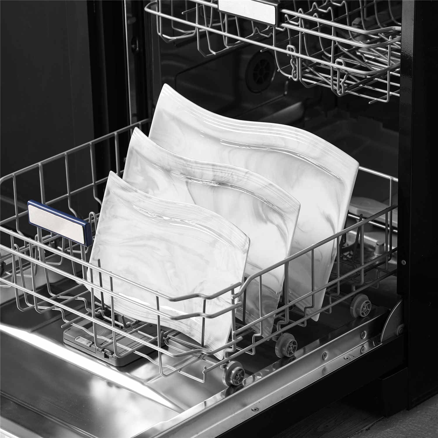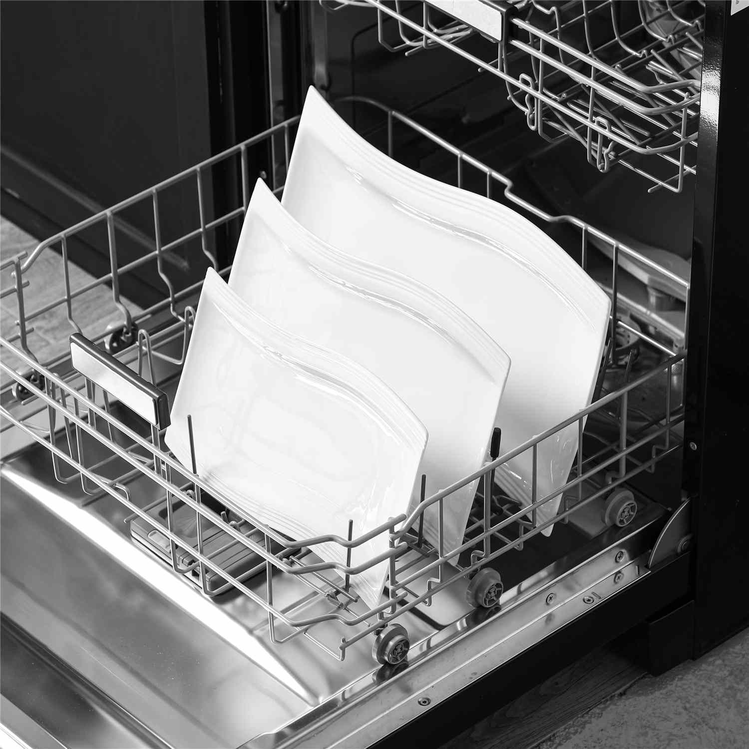 - Fine porcelain wavy-shaped rectangular plates, set of 3, ivory white/marble grey