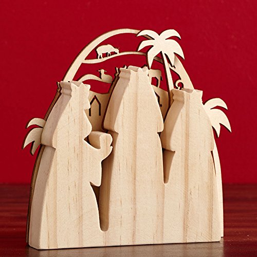 A new take on a traditional three Kings scene, blocked wood adds a contrast in visual weight and detail.