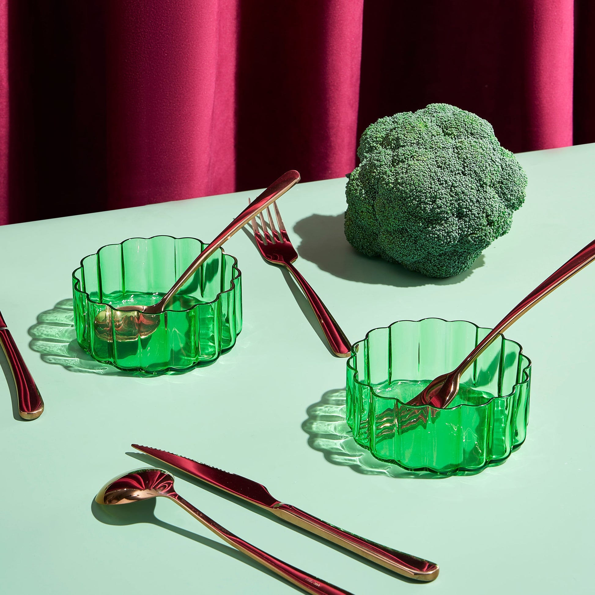 Flower Bowl Glassware, Set of 2. 4.7"diameter.