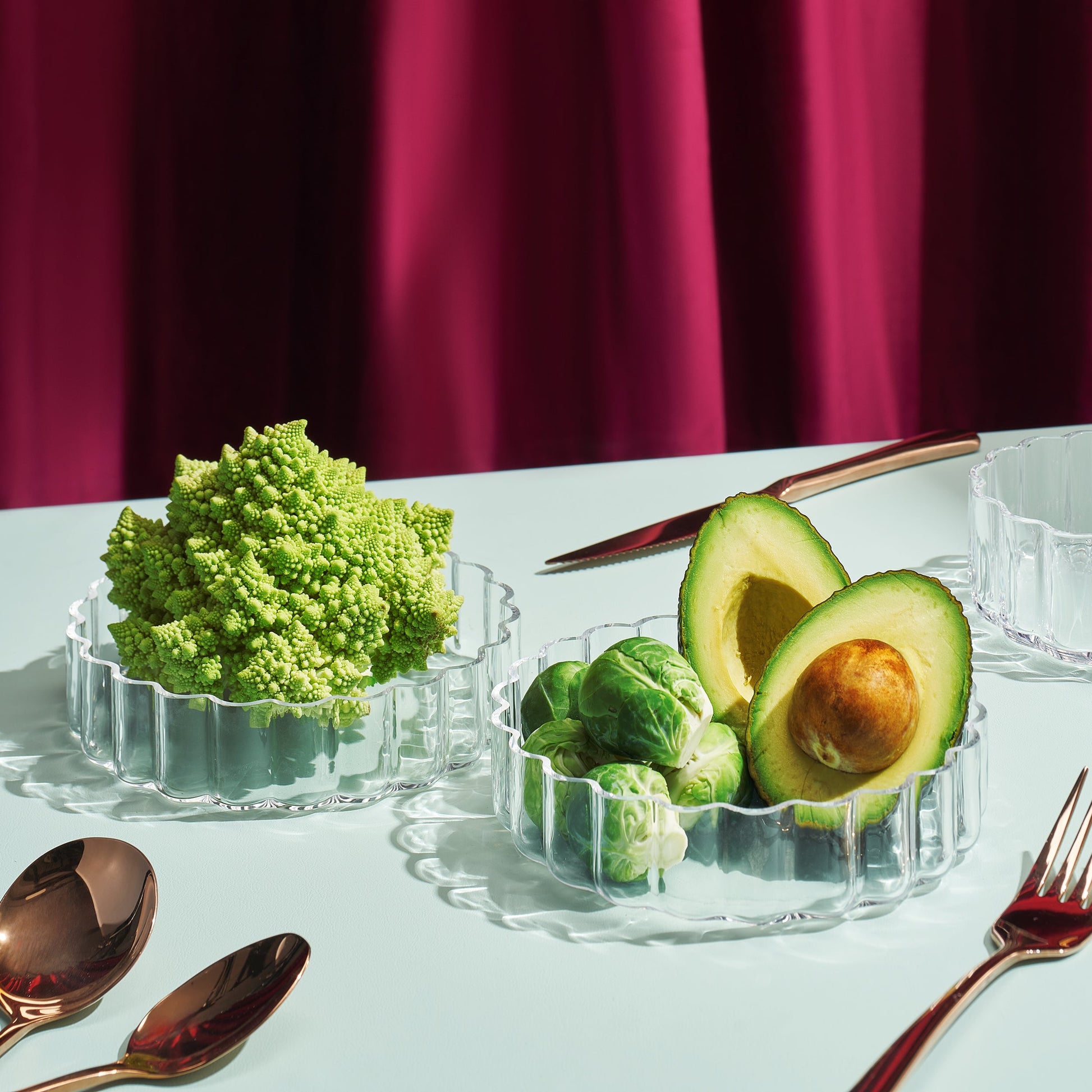 Wave Flower Plate Glassware, Set of 2. 5.9"L X 1.4"dia. Can hold 15 ounces.
