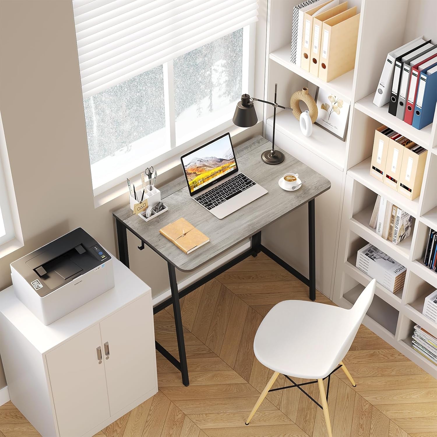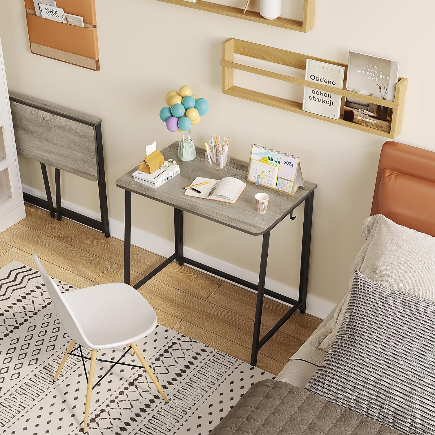 The folding desk is a practical, modern solution for small-space living. Use it as a computer desk, writing table, or bedside workstation to keep tasks organized and accessible. Embrace a tidy home office setup that fits your lifestyle and design aesthetic, while enjoying the calm and efficiency of a dedicated workspace close at hand.