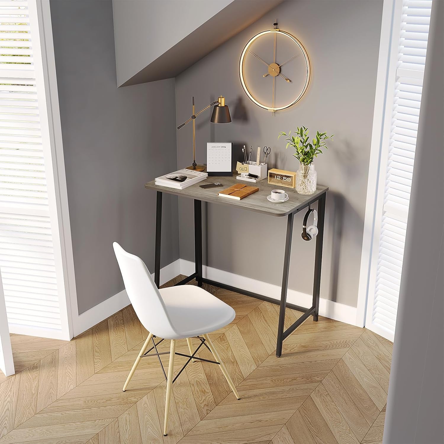 Folding Desk 31.5 Inch Gray Wash Fits Small Spaces