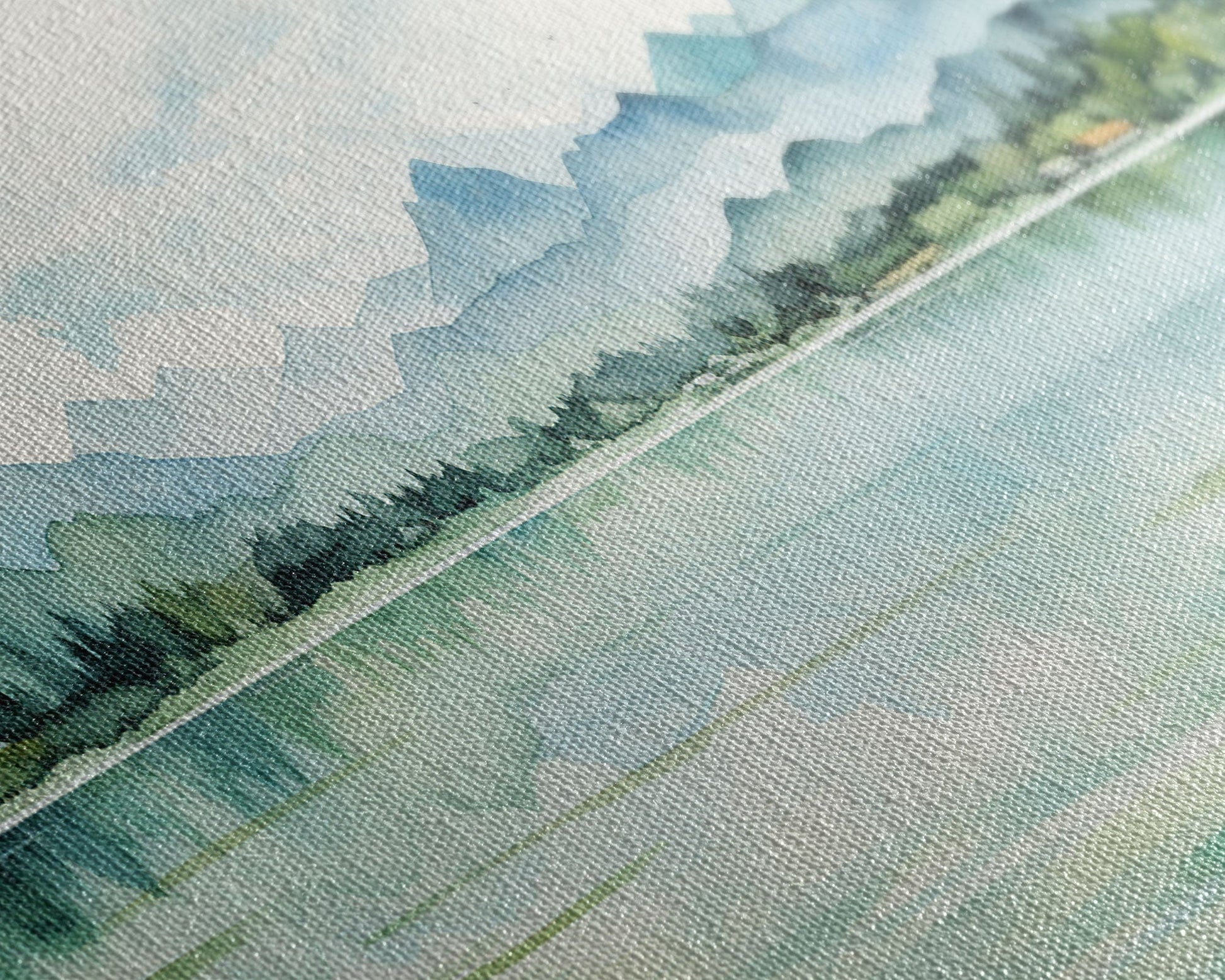 Most of our canvases are made in the USA, with the exception of canvases ordered with the light oak unstained frames, and any large canvases (24x48, 30x60, 16x48 and 20x60) ordered WITH a frame. These are temporarily made in and shipped from Europe, while we try to find a more consistent supplier in the USA.