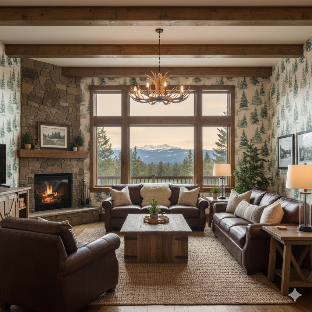 Snow-dusted evergreens rise across rolling white slopes in painterly layers of soft green and icy blue. This wintery landscape design is ideal for cabins, mountain homes, or cozy living rooms, evoking the stillness of alpine mornings.