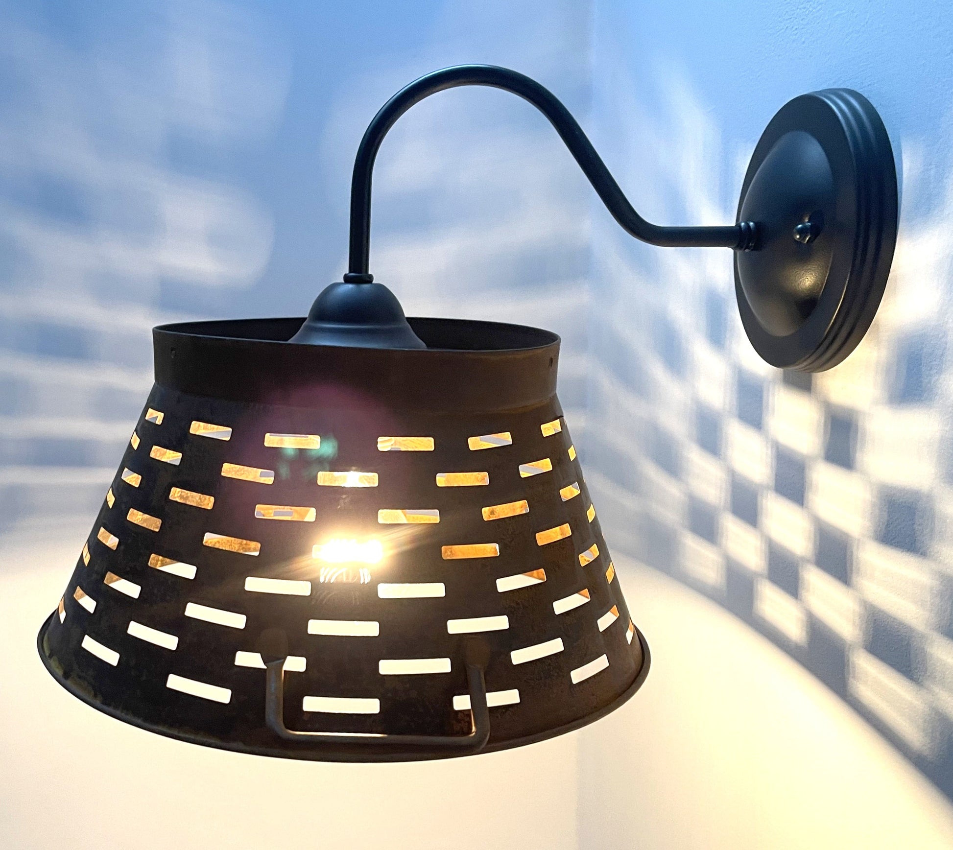 Drama and style galore! The perfect light for your cabin, man cave, lodge or vacation retreat with its casual and easy to live with rusty metal wall sconce light fixture look. The light patterns abound on the wall and there is just enough direct shade from the light so its easy on the eyes while providing excellent illumination!