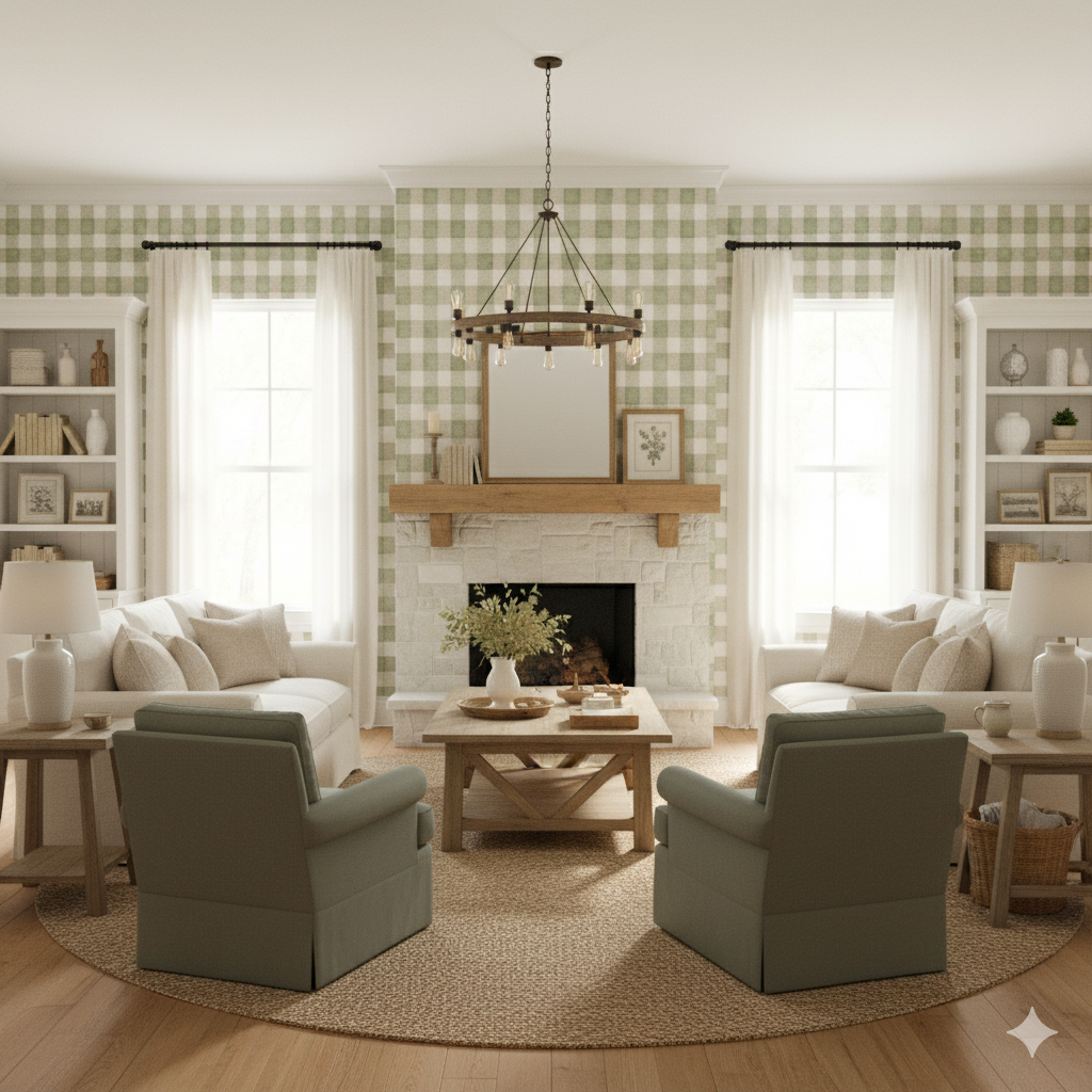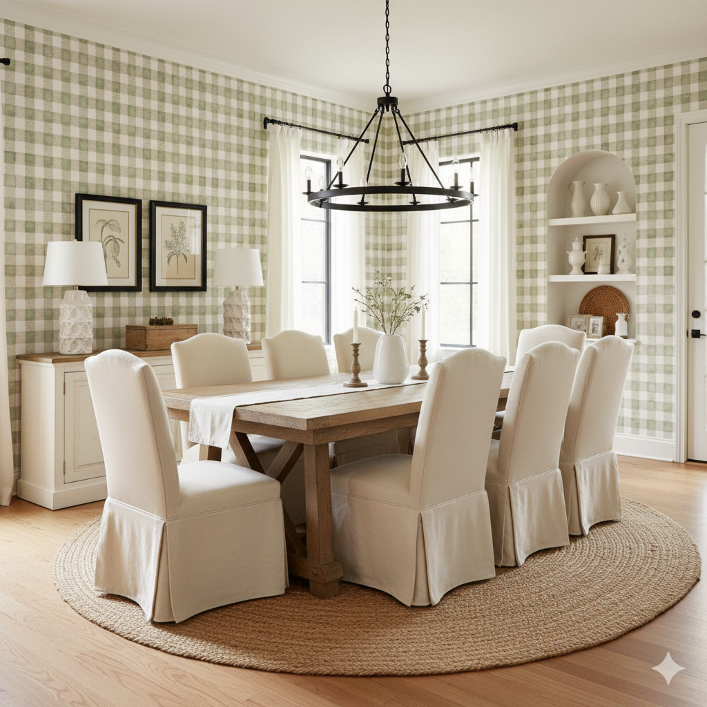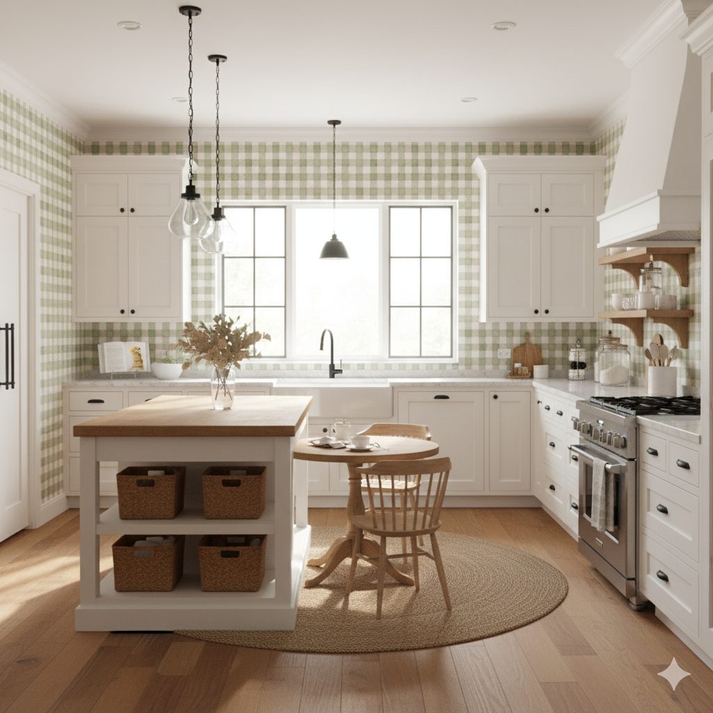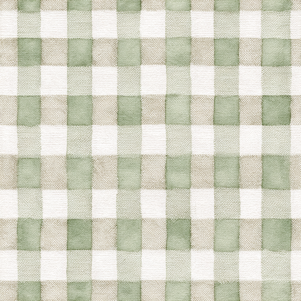A nod to countryside charm, Garden Check-In blends sage green and warm taupe into a soft gingham grid. The watercolor effect lends a handmade touch, perfect for farmhouse kitchens, breakfast nooks, or cozy nurseries. It’s the kind of print that whispers “picnic in Provence” without trying too hard.