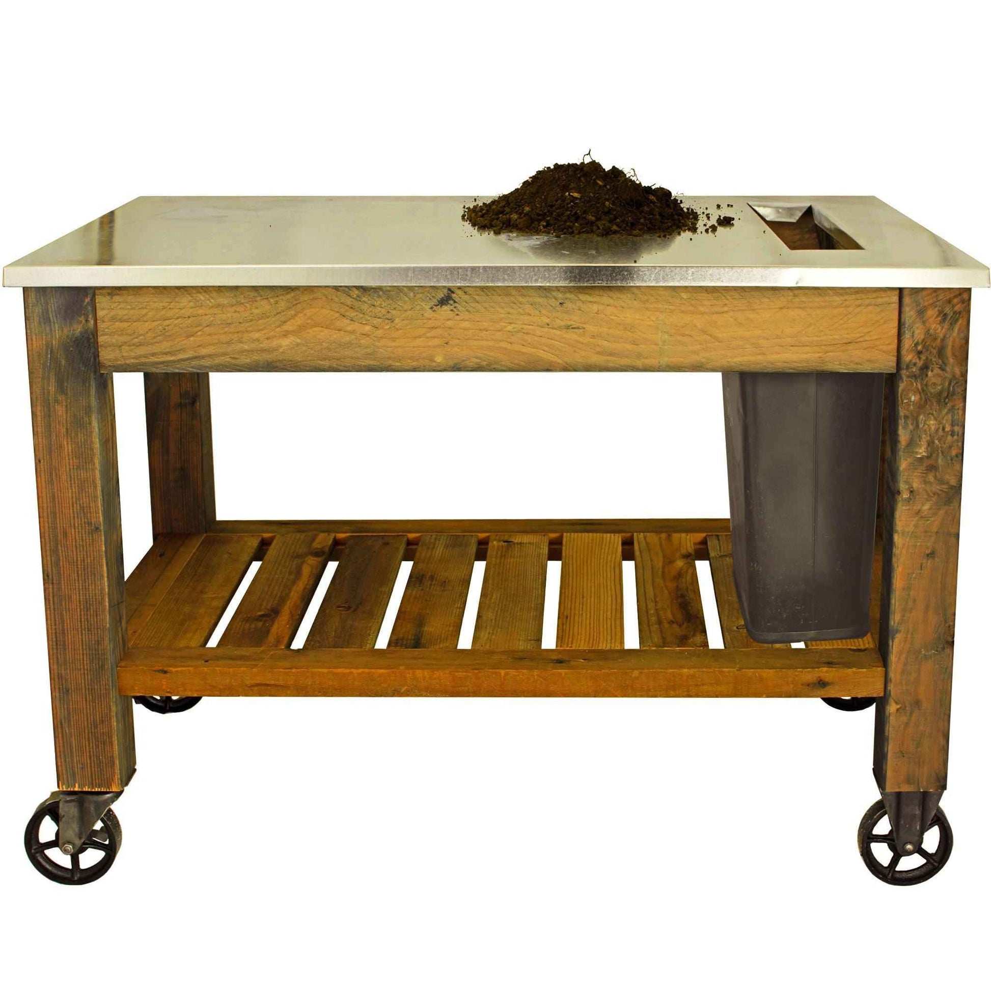 Designed for professional gardening enthusiasts and recycling fanatics! Our gorgeous potting table now comes with a waste disposal hole conveniently located on the side of the tabletop.