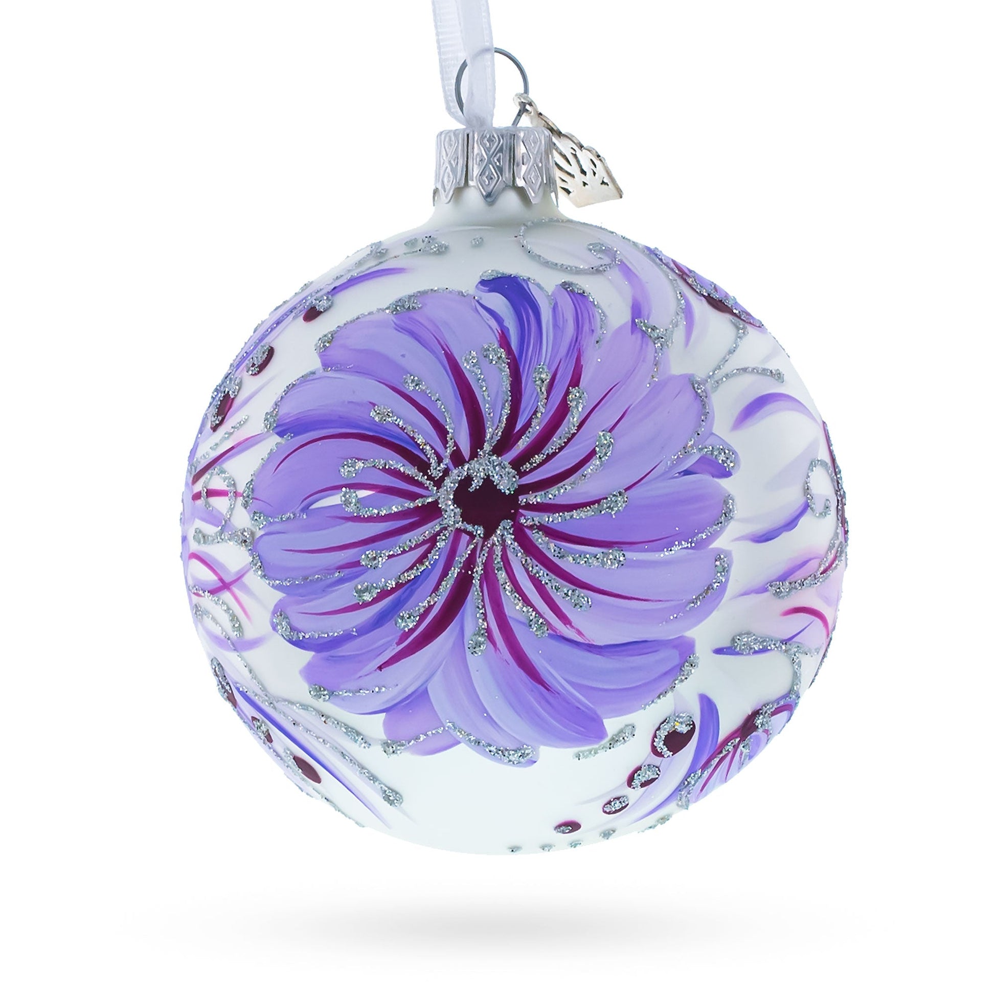 Gerbera Flowers on Purple Glass Ball Christmas Ornament