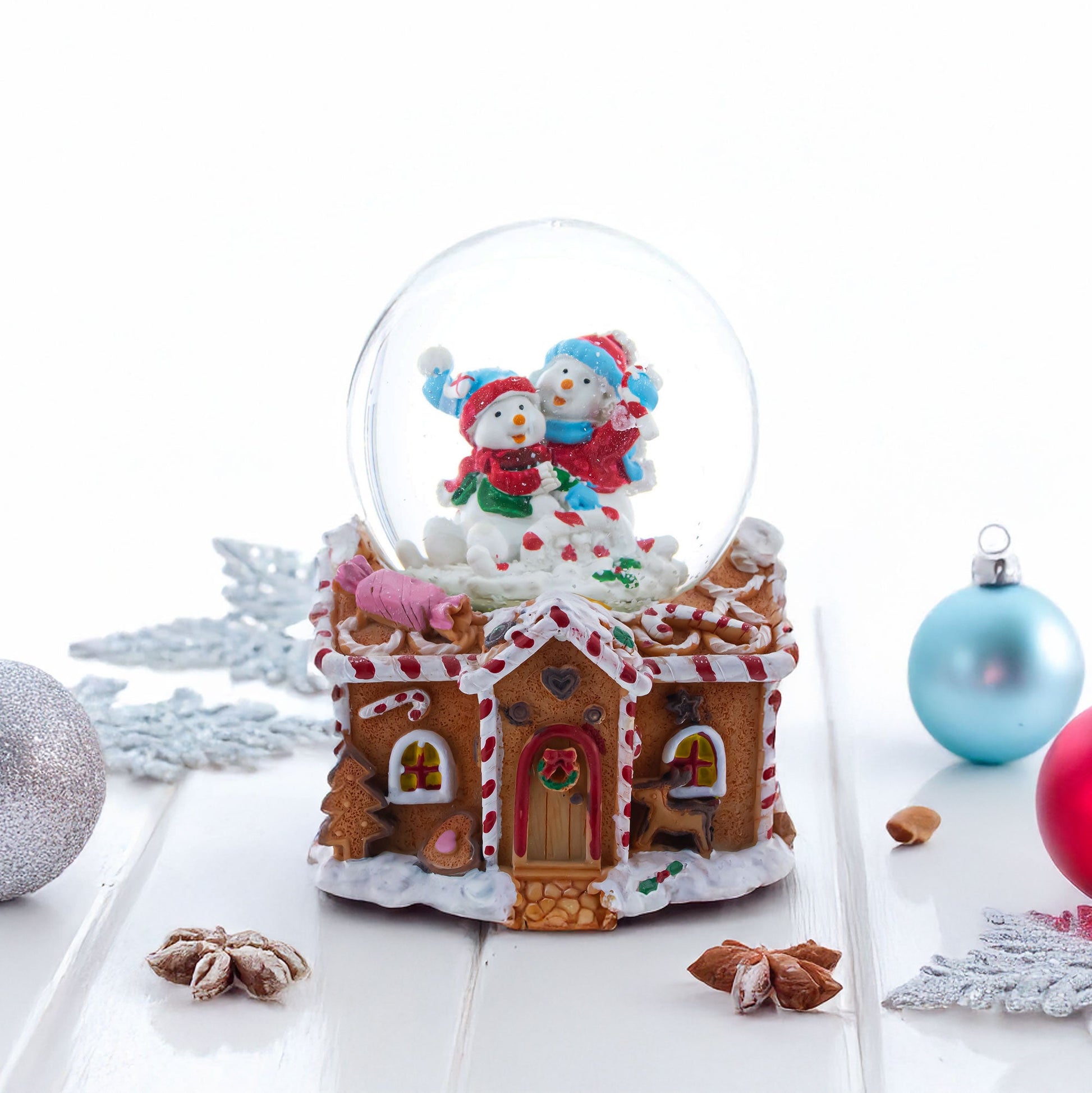 Gingerbread Cottage Snowmen Romance Musical Water Snow Globe