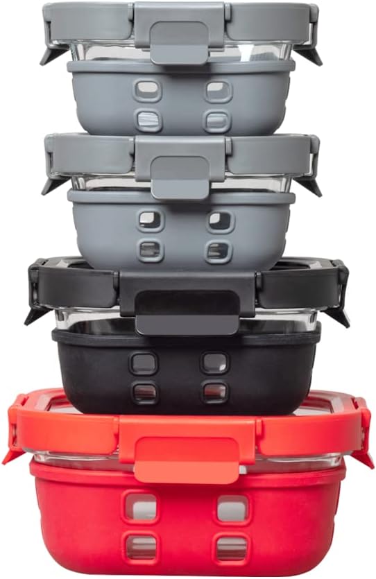 Each container in this set comes with a removable silicone sleeve that prevents slipping and serves as a safe place to hold the container while it's hot.