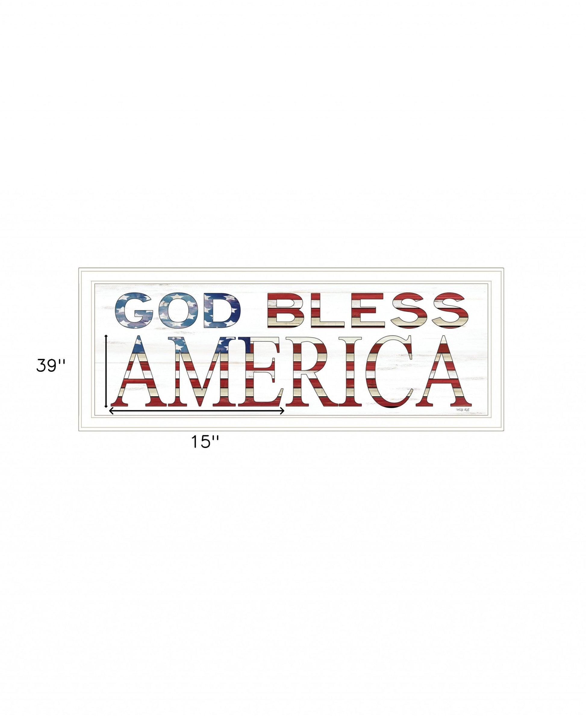 The god bless america 5 white framed print wall art is the perfect decorative accessory for your home. This print is a visual artistic expression that allows you to decorate your space in style. Reproduced for you on wood, this hanging decorative accent will be a trendy and fashionable way to dress your walls in a rustic and modern farmhouse vibe. Hang on your wall to add some up to date fashion and decoration. Utilize this opportunity to create a focal point in the room with this fabulous wall decor option. 15 inches H x 39 inches W x 1 inches D