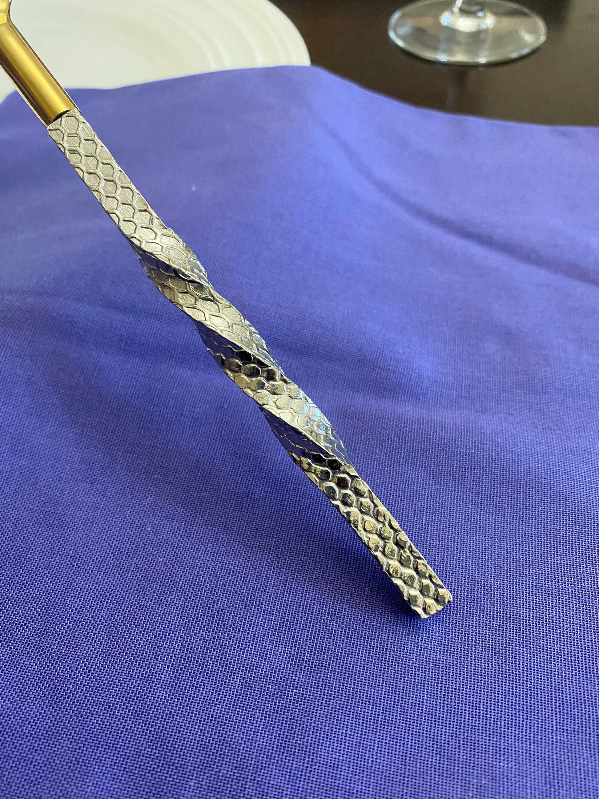 - Handmade cutlery set by skilled artists. Dish washer safe. Top rack only. Hand wash recommended for longer shine and durability