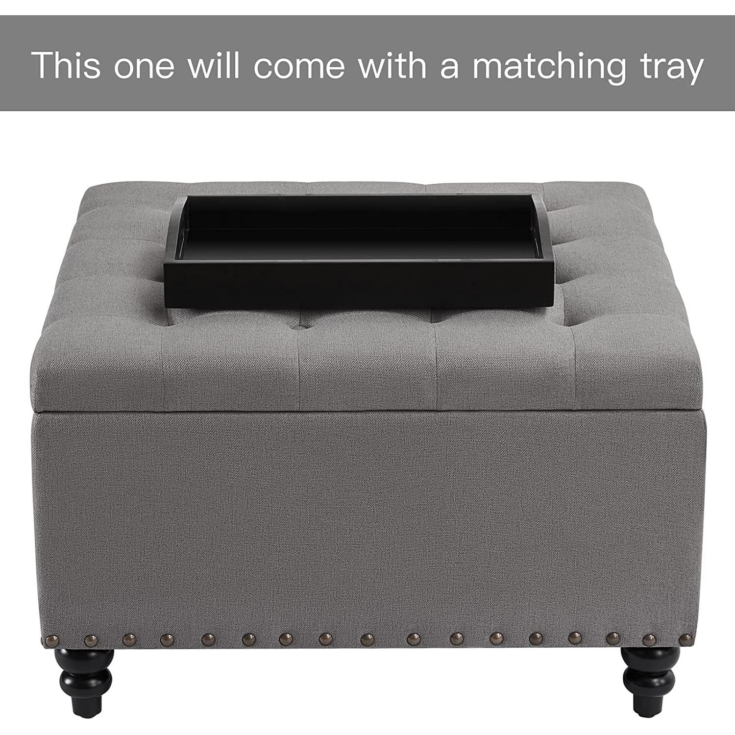 Grey Tufted Storage Ottoman With Tray Square Coffee Table