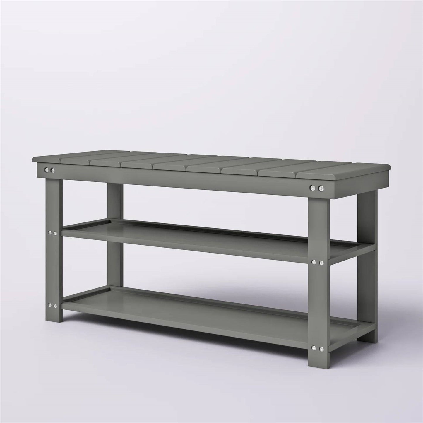 - Grey Wood 2-Shelf Shoe Rack Storage Bench For Entryway or Closet