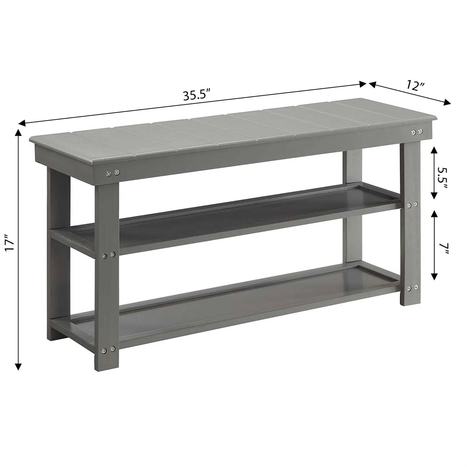 Grey Wood 2-Shelf Shoe Rack Storage Bench For Entryway or Closet
