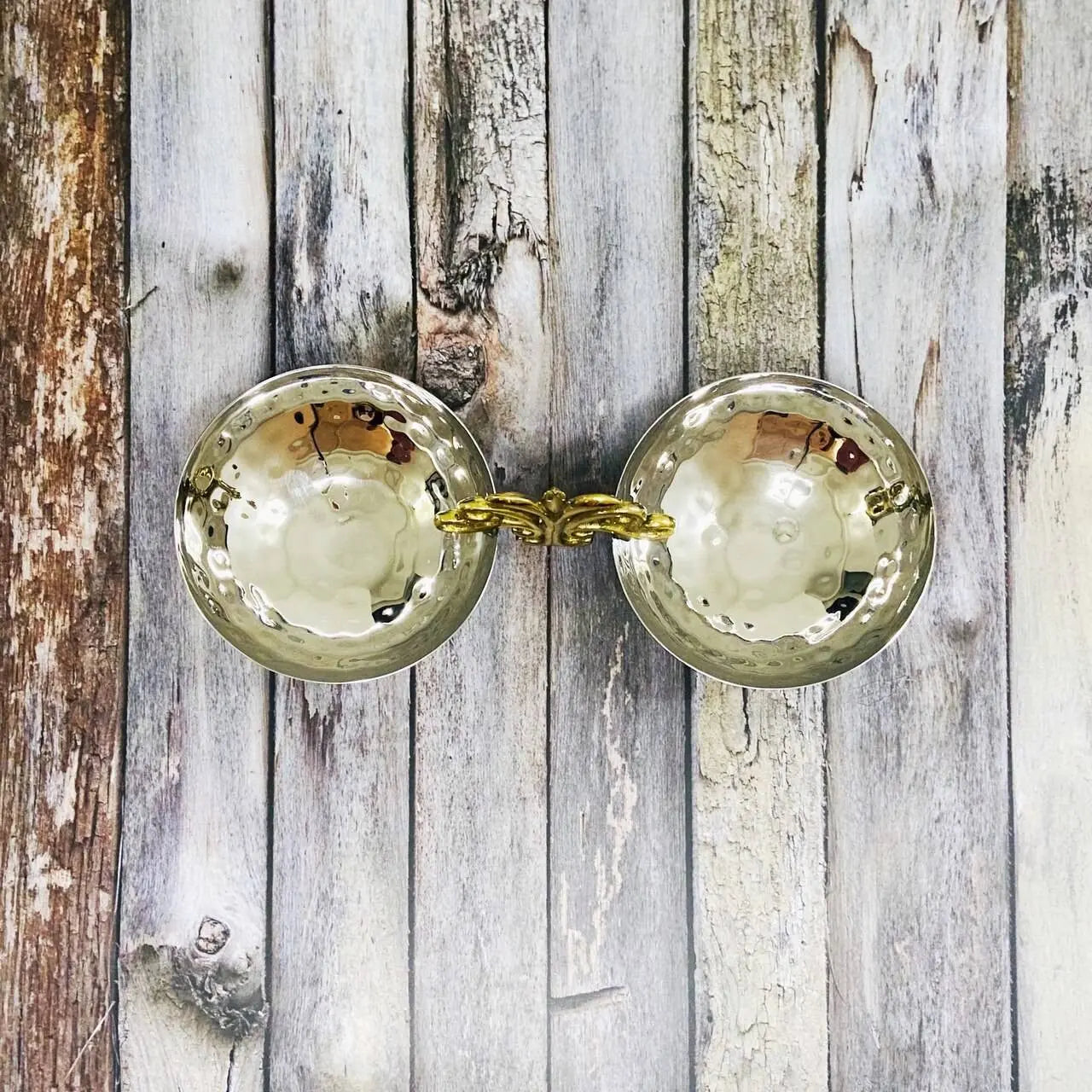 These bowls from has an elegant design with leaf designs finished in golden colour. The bowls can be used to keep dry fruits or snacks, and can also be used as a key bowl or decor item. The bowl is made of stainless steel and has a silver finish. INOX artisan's handmade Full polished heavy gauge High Grade Stainless Steel Nut Bowl which has varied usages as per your party hosting or daily usage requirements for different applications. Its a bowl which makes a grand statement on your guest. A bowl for party or daily usage sought after for style and grand statement. Perfect wedding gift or housewarming gift.