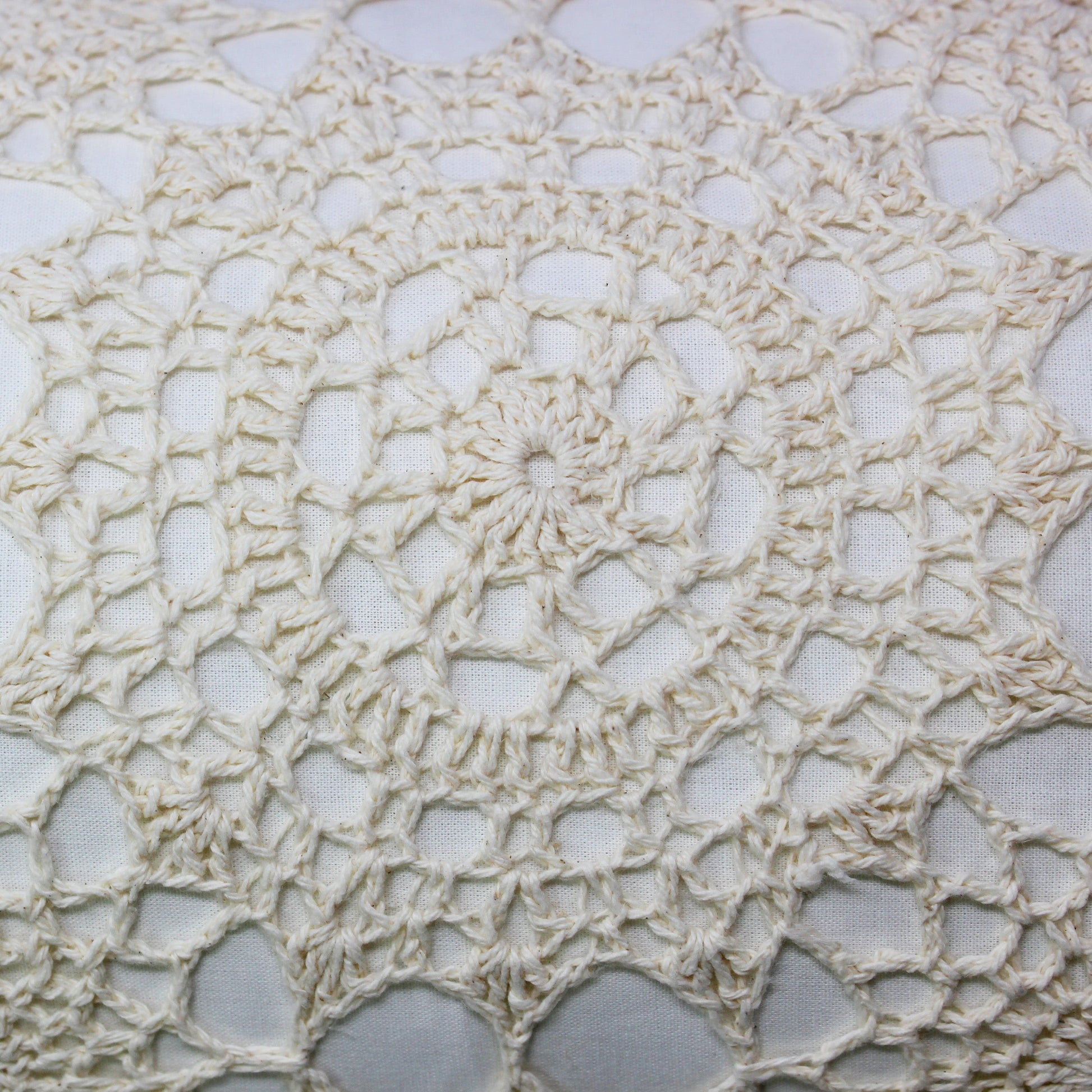 Add a touch of romance to any bedroom with our elegant pillows. Crochet is a centuries-old technique that produces intricate designs and beautiful details. We continue this tradition, making each pillow cover by hand. The delicate open-work design is attached to a solid cotton backing which provides total coverage for the pillow. The removeable cover features a hidden zipper. The cover can be machine washed and dried, and we suggest washing it inside a sweater bag to avoid any snags.