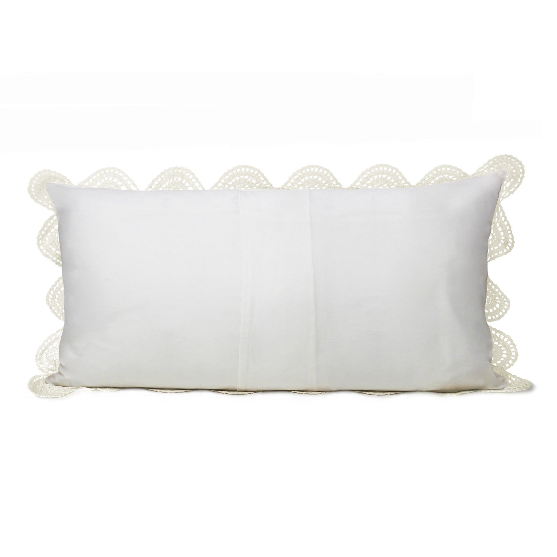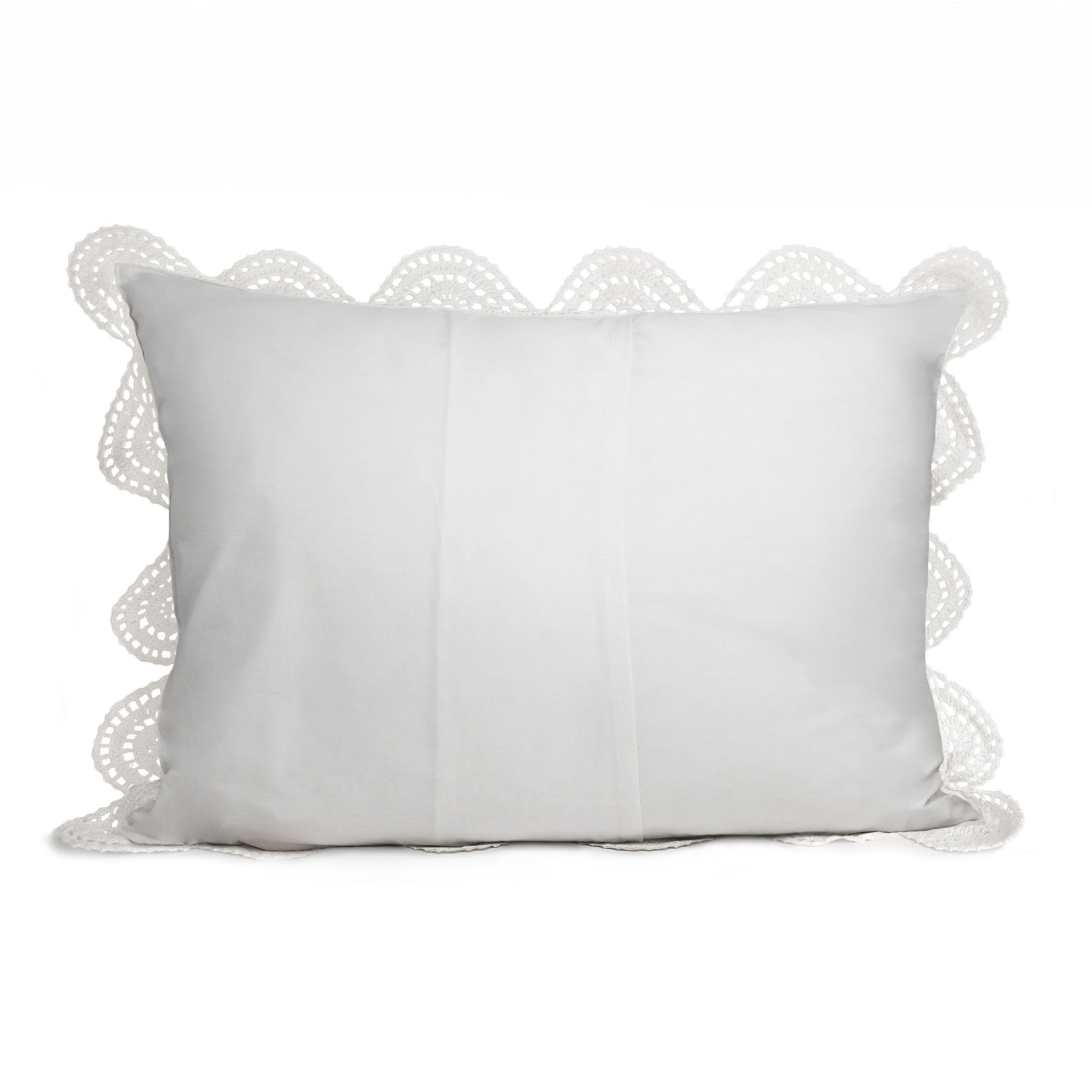 Add a touch of romance to any bedroom with our elegant pillow shams. Crochet is a centuries-old technique that produces intricate designs and beautiful details. We continue this tradition, making each sham by hand. The delicate open-work design is attached to a solid cotton backing which provides total coverage for a pillow. The back features a simple envelope closure for easy on and off. The shams can be machine washed and dried, and we suggest washing them inside a sweater bag to avoid any snags.