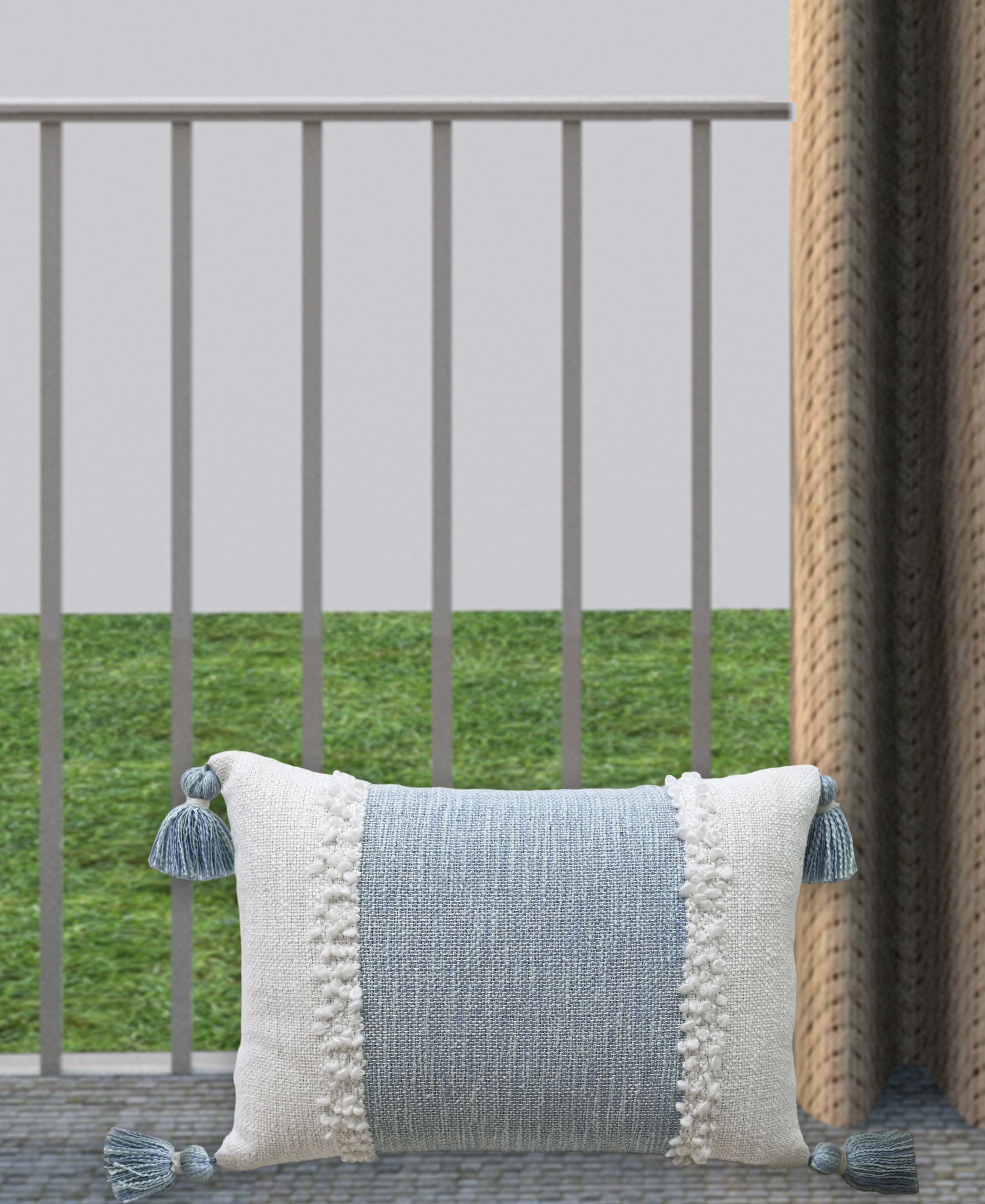 14''X20'' Handloom Woven textured elegant pillow with corner tassels Includes: 1 Decorative Pillow with high quality insert Pillow is designed, filled and finished in the USA, 60 Days limited manufacturing warranty Zipper Closure for easy removal of insert. Back of the pillow has solid color with no pattern. Crafted with care and handloomed to perfection, this pillow's elegant textured pattern adds a touch of sophistication to your decor.