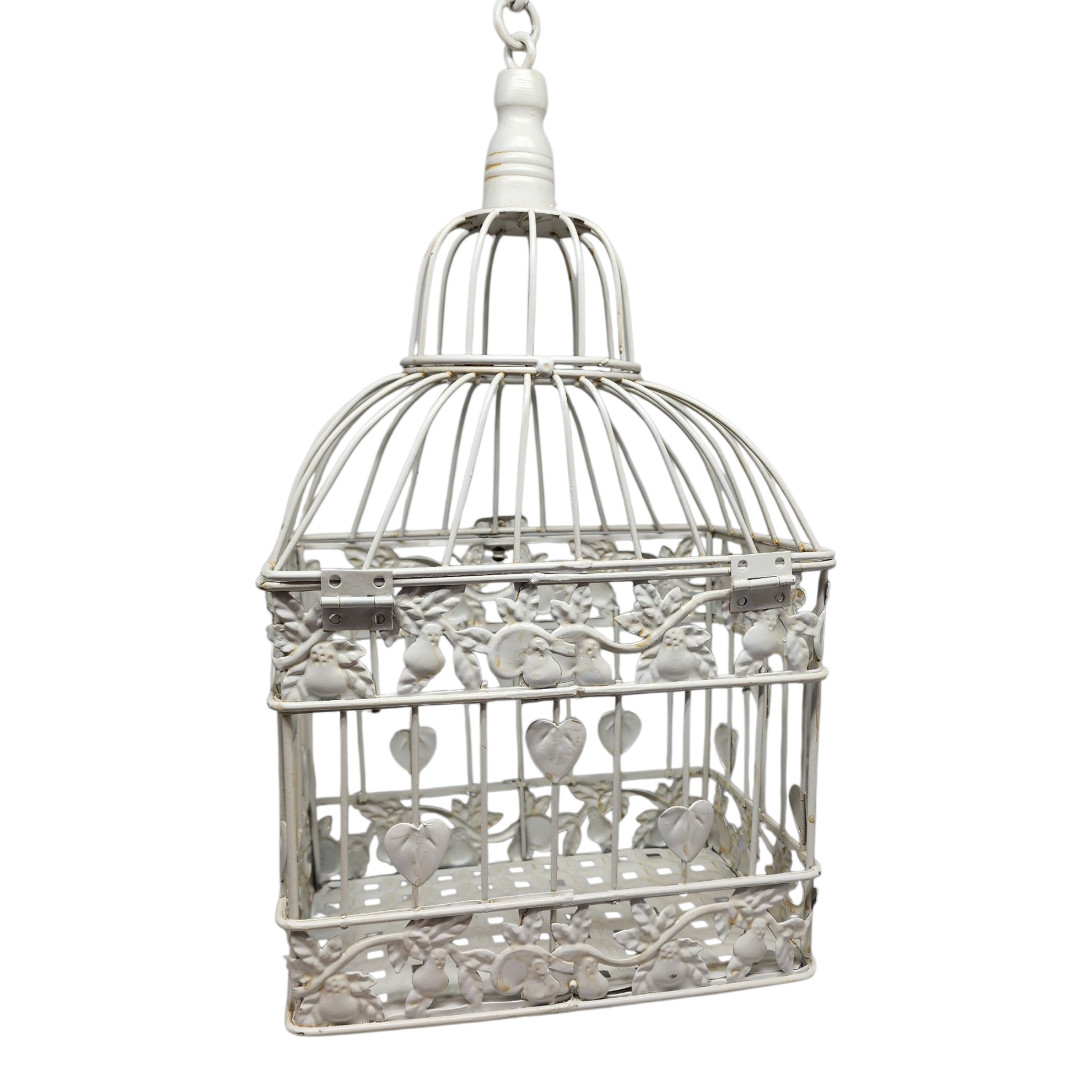 Transform your space with this delightful vintage-inspired metal birdcage, an enchanting addition to your home decor collection. Ideal for adding a touch of whimsy to any setting, this birdcage can serve a multitude of purposes, whether you're using it as a cozy home for your favorite plant, a unique candle holder, or a charming letter box for wedding guests to drop their well wishes. With its elegant design and hinged top for easy access, this birdcage will surely be a conversation starter at your next gathering.