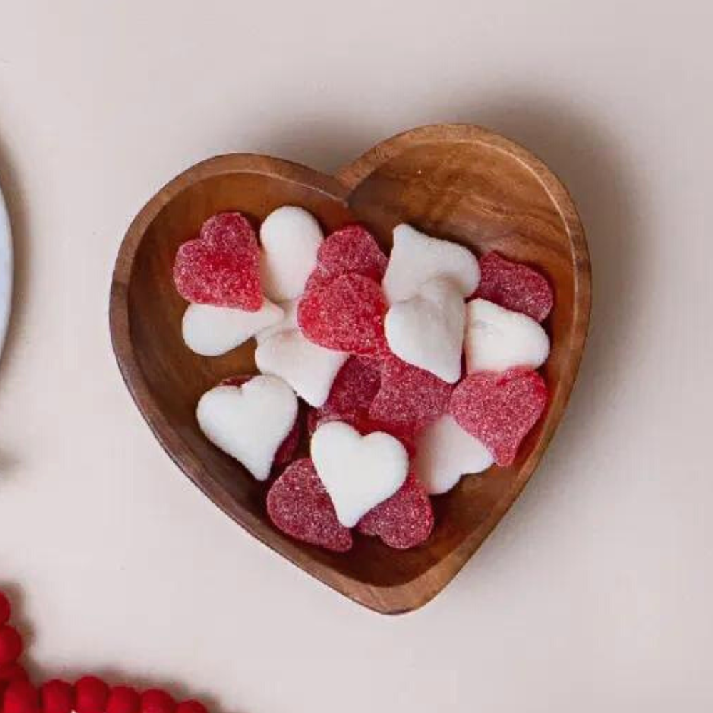 Sustainably harvested acacia wood is carved and sanded to a smooth finish to create this beautiful heart shaped bowl, perfect for serving Valentine sweets and more. Food safe finish.