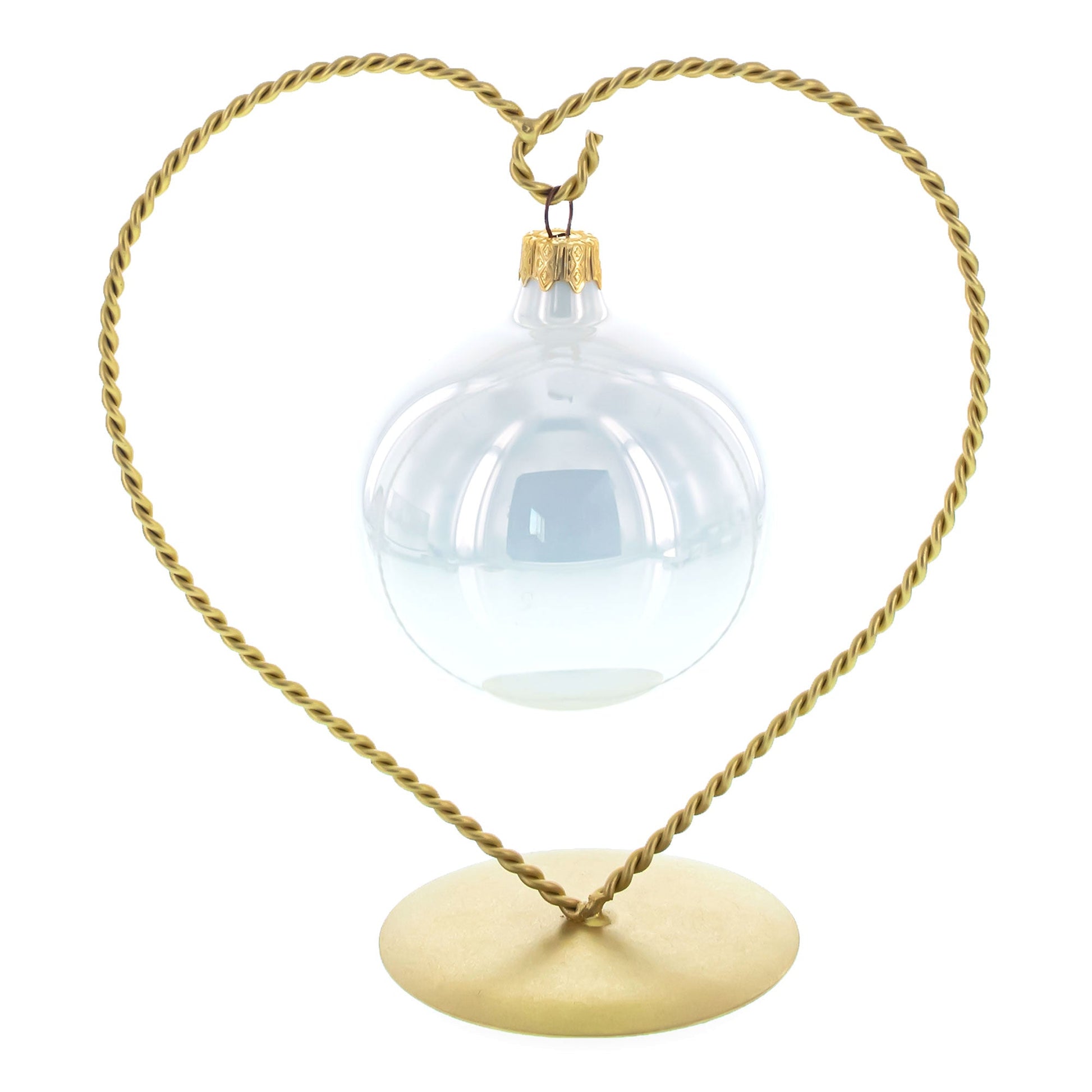 Celebrate love and elegance with this 6.2-inch heart-shaped ornament display stand. Crafted from twisted gold-coated metal, its romantic silhouette brings warmth and charm to any setting. The curled hook at the top provides a secure spot for hanging lightweight ornaments, keepsakes, or charms. Supported by a smooth, round base, this stand offers both stability and delicate style, making it ideal for gifting occasions, wedding favors, holiday décor, or everyday display. Its compact size fits beautifully on shelves, desks, or mantels—perfect for adding a heartfelt touch to your space.