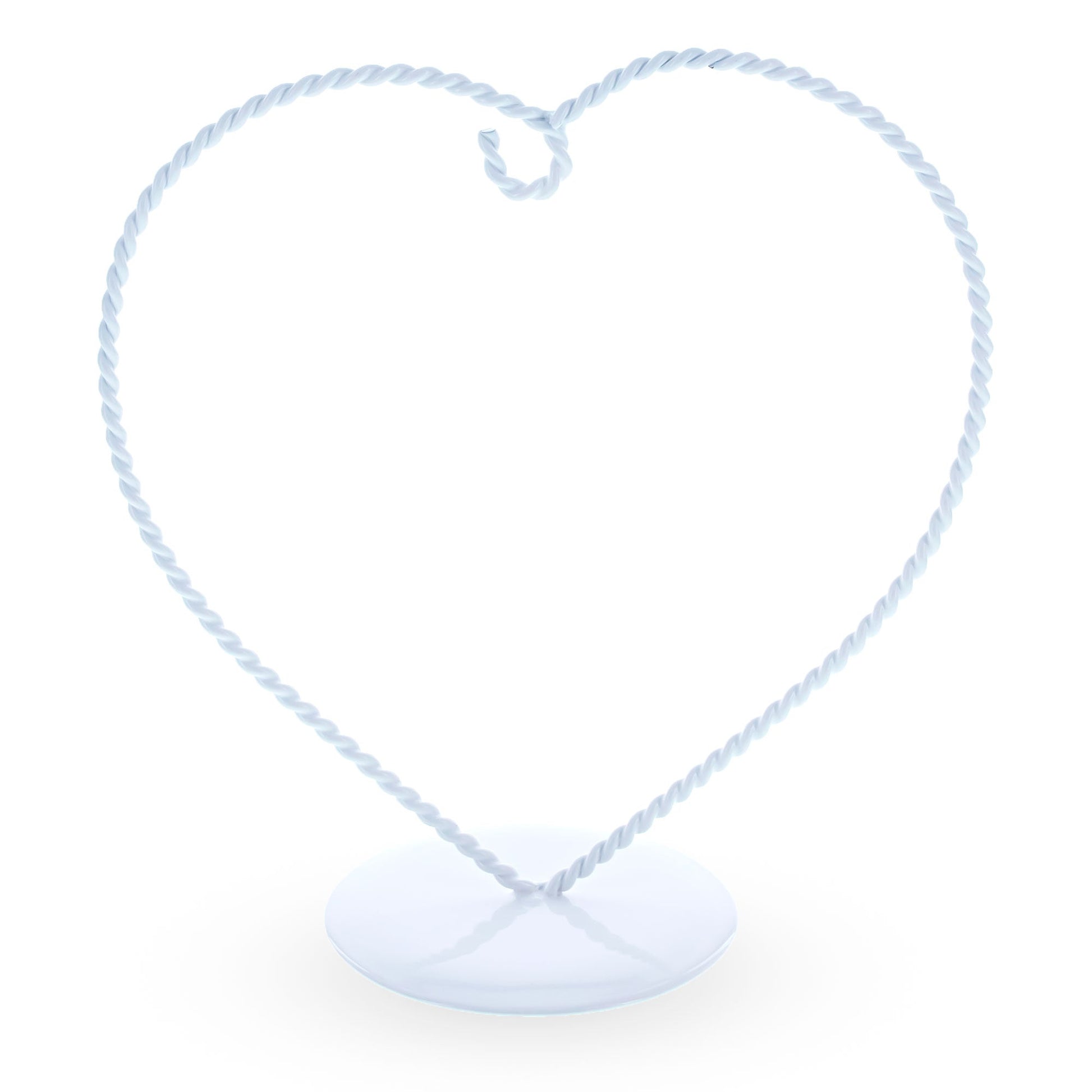 Heart-Shaped Twisted White Painted Metal Ornament Display Stand 6.2 Inches (Poland)