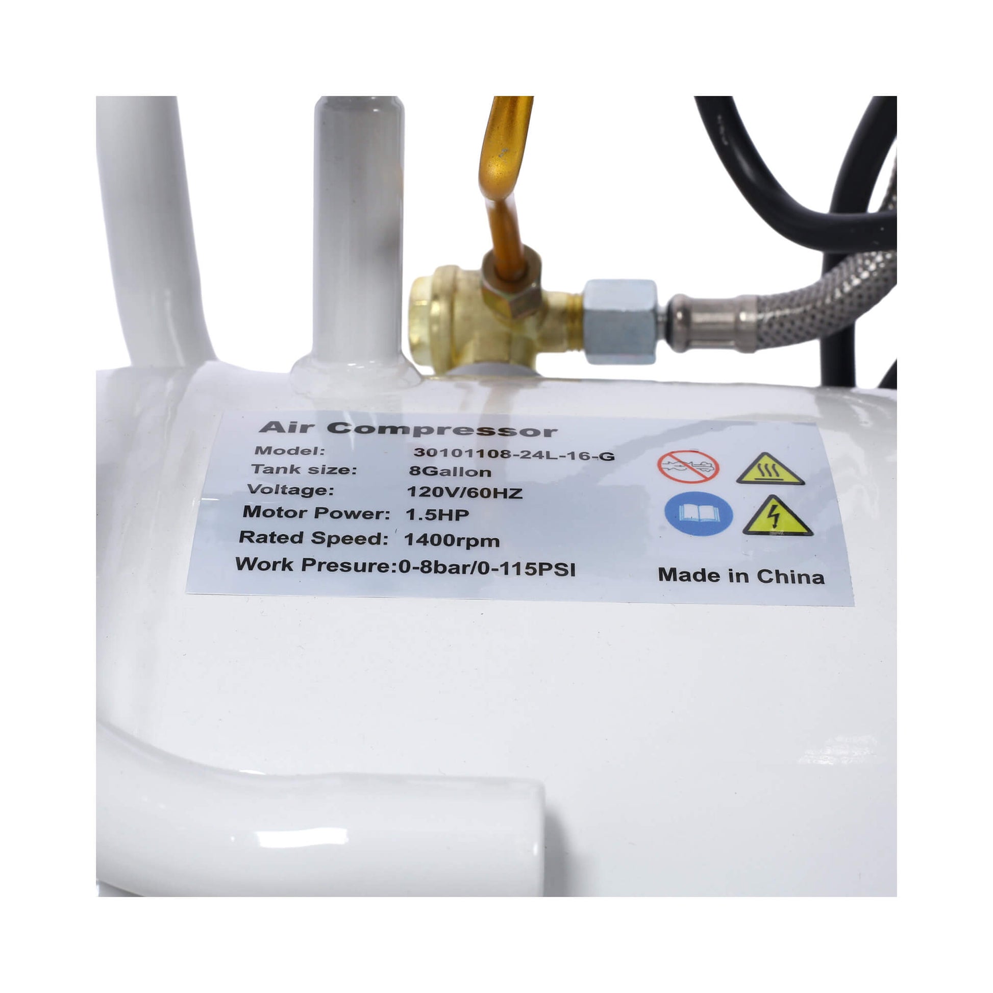 - This 1.5HP oil-free air compressor runs quietly and efficiently at 1400 RPM. With an 8/13-gallon tank and up to 115 PSI, it powers tools like nail guns and spray guns with reliable airflow. Its portability and auto drain make it easy to use and maintain.