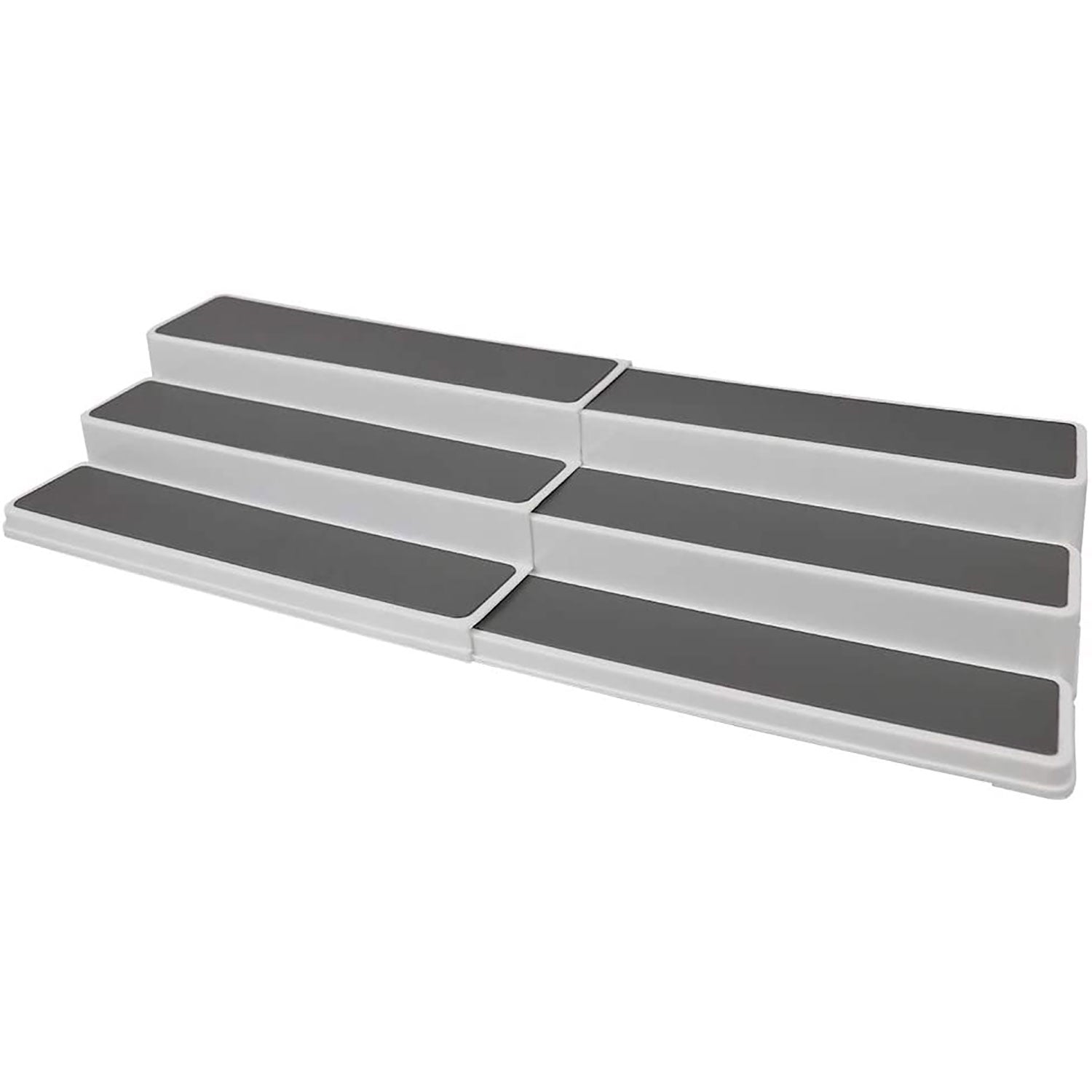 Multiple levels lets you easily see and grab what you need. Beyond the kitchen, use can use this organizer to store cosmetics, perfume, skincare products, supplies, small decorative items and more. Spot clean. Expands to 23" in width.
