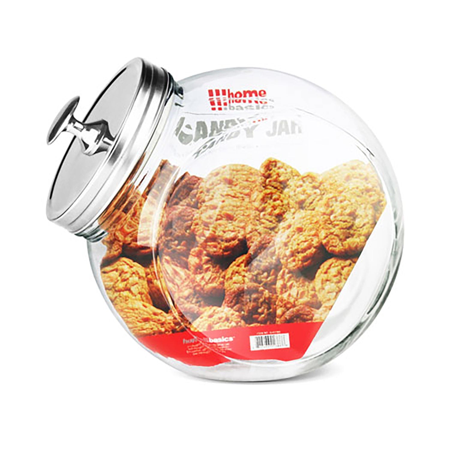 Home Basics Large Round Glass Candy Storage Jar with Stainless Steel Top, Clear, 1 Gallon