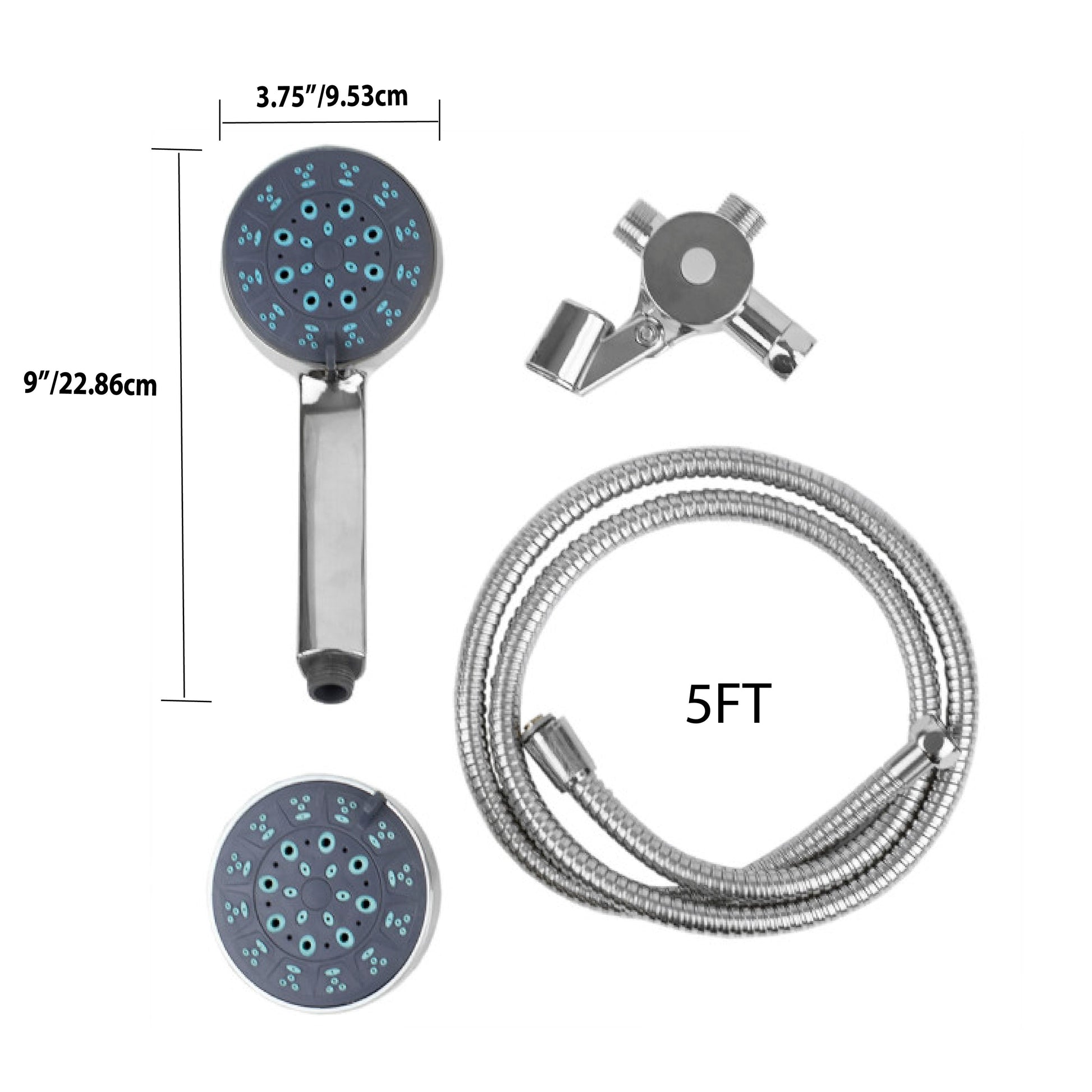 Transform a dull bath routine into a rejuvenating spa day! Set this fixed shower head into your shower stall and get ready to escape to pure paradise with 3 distinct spray settings to cater to your shower needs. Switch between the handheld or stationary shower using the 3 way diverter. The shower head’s body is crafted from high-impact plastic with a solid steel housing that prevents cracks and dents. Beautifully marrying form and function, the surface is topped with a crisp, chrome finish that matches beautifully with your unique decor. High performance jet nozzles are constructed from premium silicone rubber that keeps mineral build-up at bay for easy upkeep. The hose length is a generous 5 feet or 60 inches, perfect enough to rinse your pets or clean the shower stall or tub. SIZE: 9x3.75 Inches. COLOR: Silver