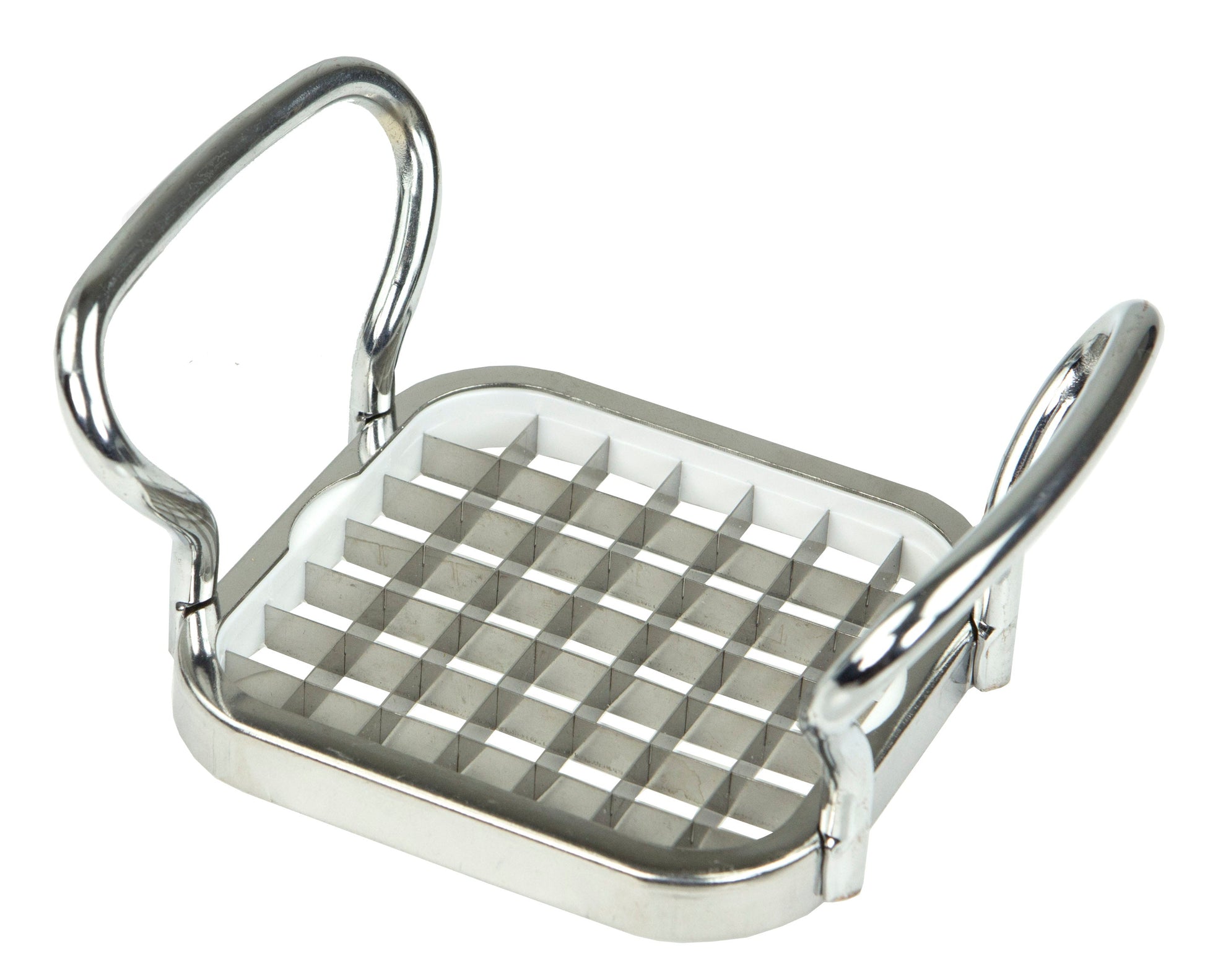 You'll never deal with tedious chopping and slicing slippery potatoes by hand when you have this convenient french fry cutter in your kitchen cupboards. Simply place a potato on a cutting board or worksurface with its flat side down. Then place this slicer on top of the potato and firmly press down. Within seconds enjoy turning a single potatoe into evenly shaped wedges. This tool is also great to use on other vegetables too. DIMENSIONS: 5x2.5 Inches.