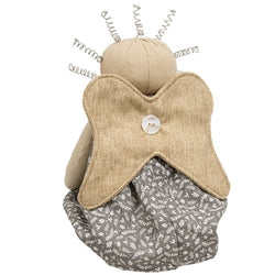 Hope the Inspirational Angel Doll is a charming country accent perfect for springtime or everyday decor. Finished with neutral canvas, the doll has a weighted body, round head, floppy arms, and dangling legs. A pair of angel wings are attached to her back with a pearlescent button. Spiral wire curls adorn the angel’s head, while painted eyes and flushed cheeks give a friendly look. The doll wears a blue-gray floral flour sack dress secured with a pearlescent button and accented by a brown paper tag that reads, “hope.” Measures 7.5” high by 6.5” wide by 3” deep.