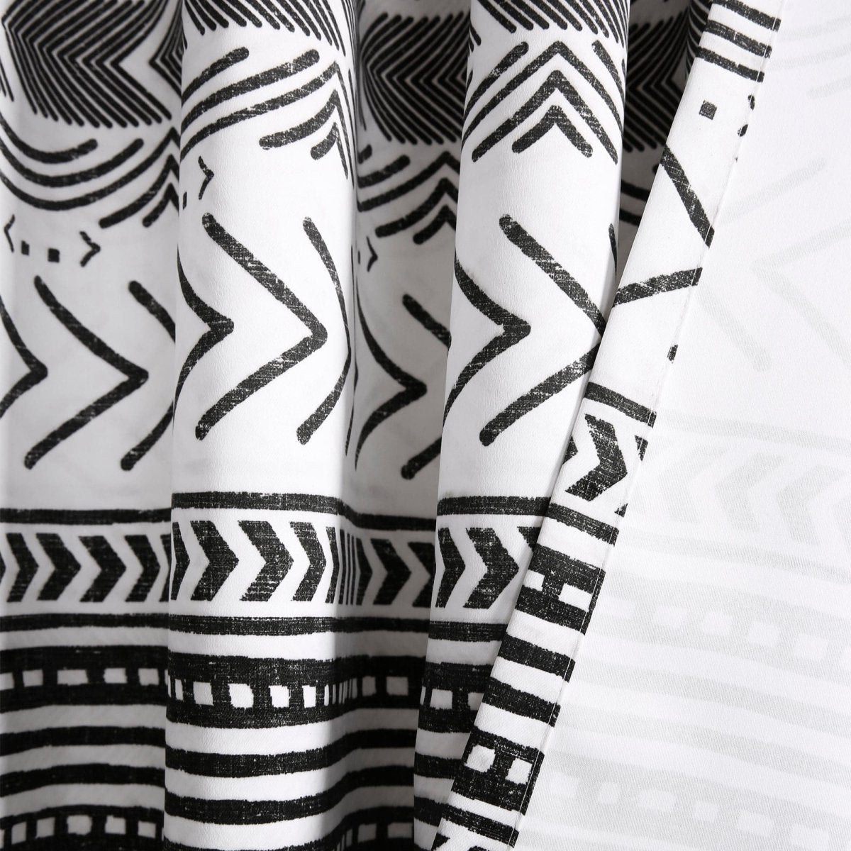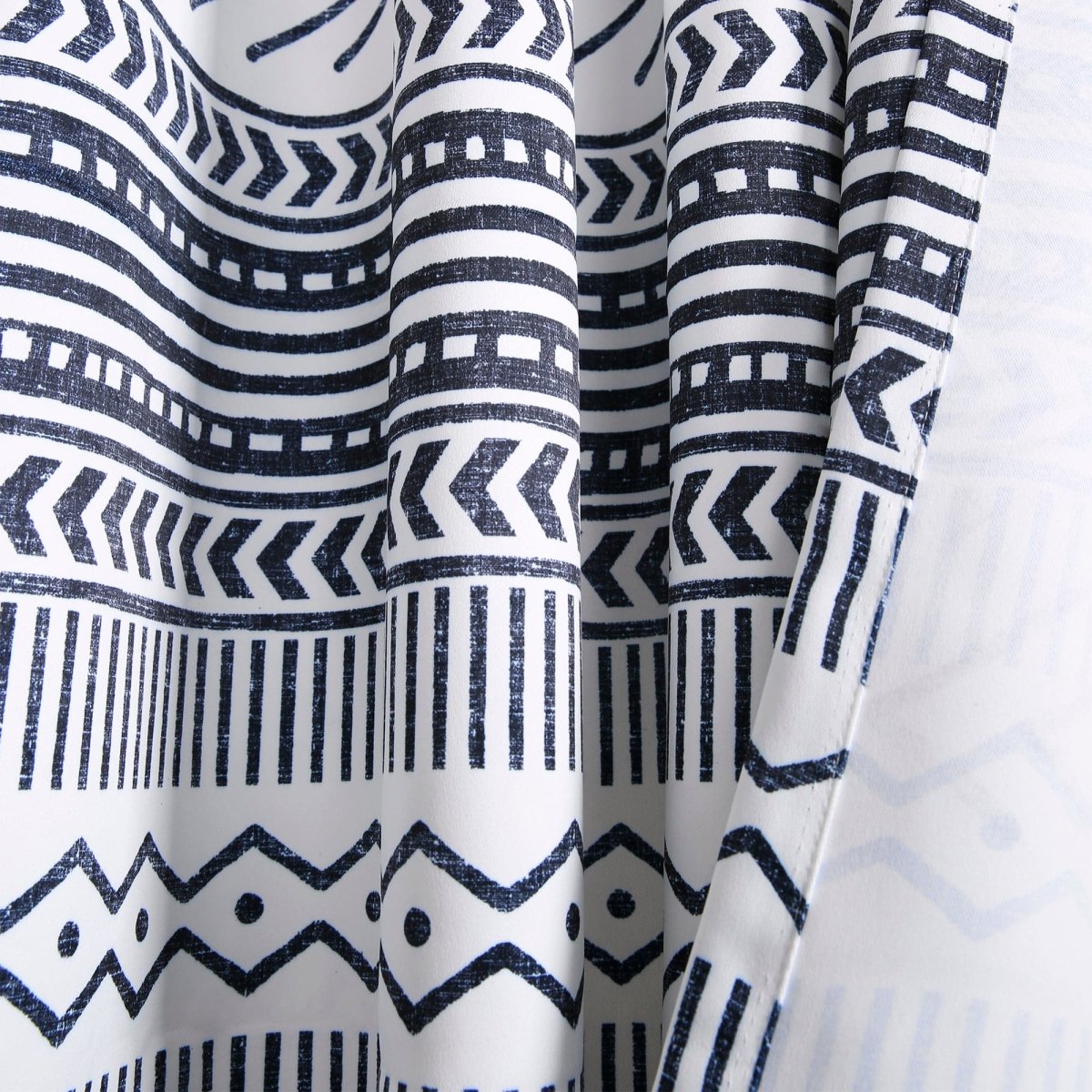 Printed on light blocking fabric, these panels help to filter out light and heat. While not full blackout, this Hygge Geo Light Filtering Window Curtain Panel Set will effectively reduce much of the light, heat and sound coming in from outside and provide plenty of privacy from onlookers.