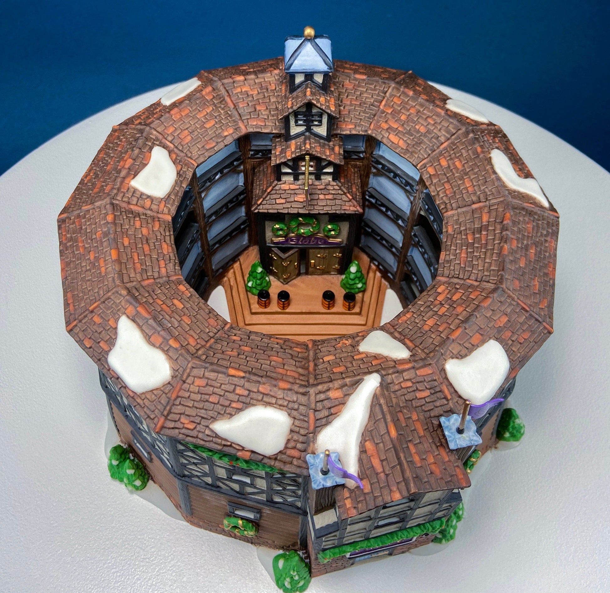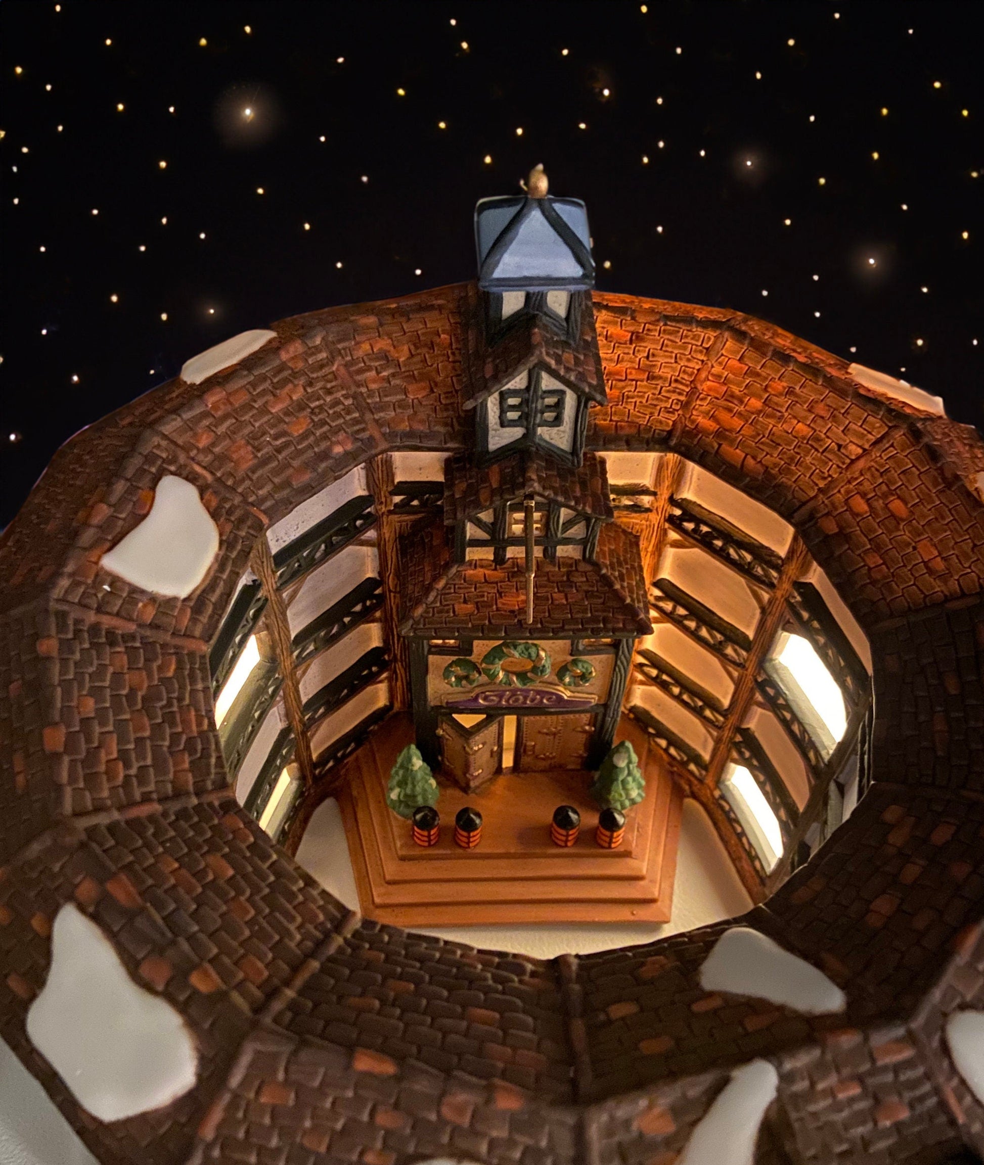 Illuminated Old Golden Globe Theater. Set of 4. Porcelain Christmas Village House by Dept. 56. Dickens' Village Historical Landmarks Series. Magical Alternative Holiday Decor. Stunning Detail. Excellent Condition. 2 Light Kits Included. Original Box Included. Gift for Shakespeare Lover or English Lit Fan.