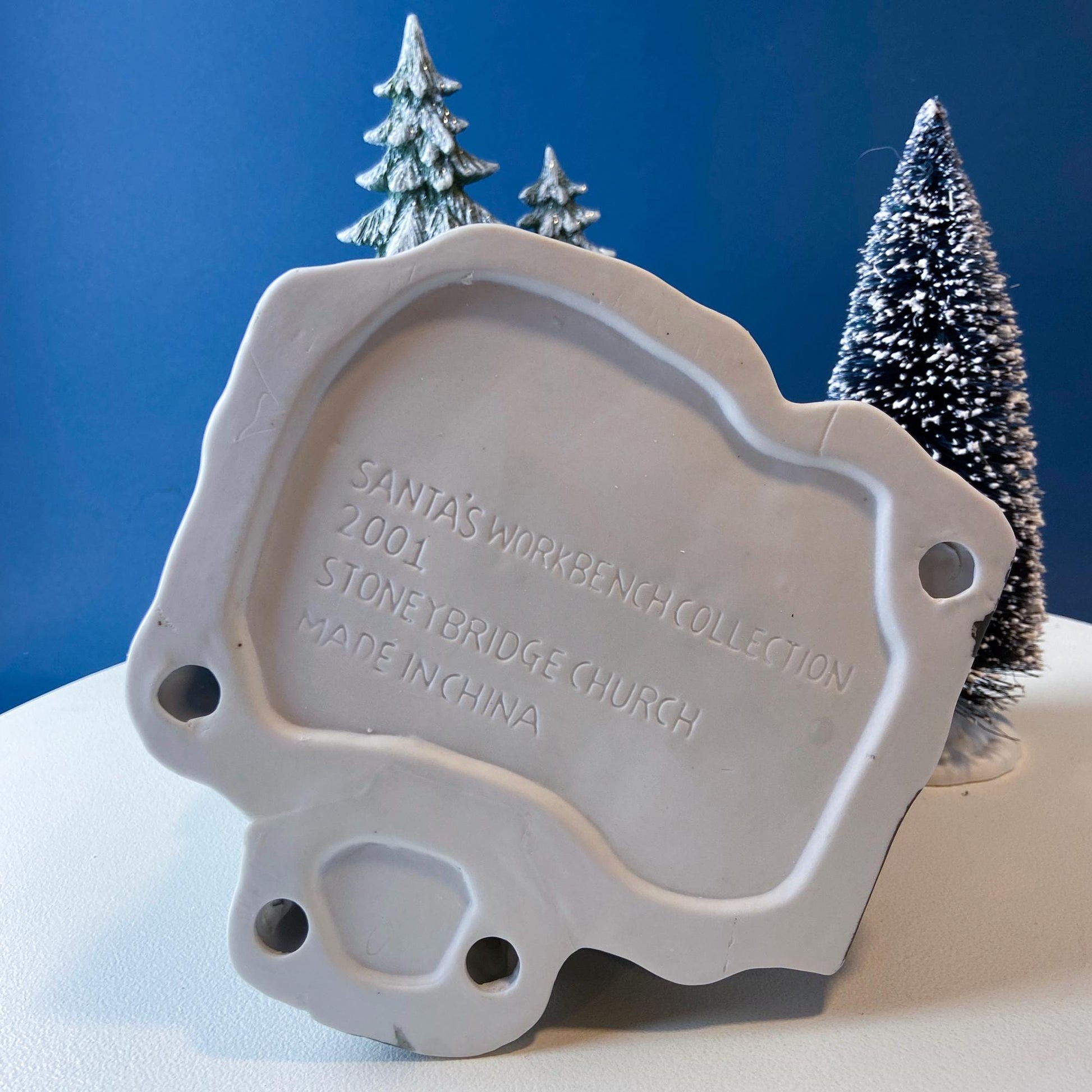 Illuminated Stoney Bridge Church by Santa's Workbench Collection. Victorian Series. Christmas Village Building. Porcelain Lighted House. Light Kit Included. Additional Free-standing Islands, Trees, and Accessories are not Included in the price.
