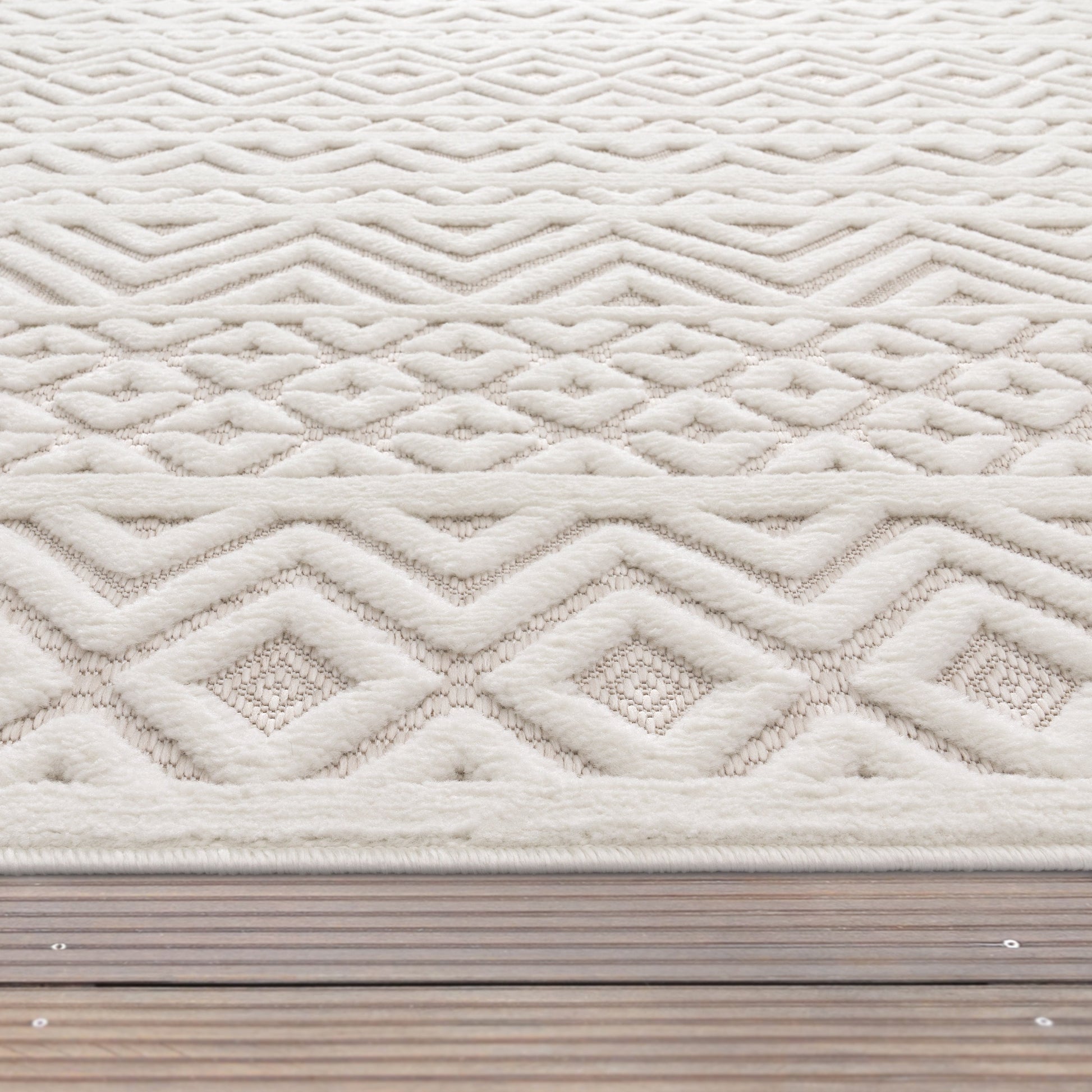 Indoor Outdoor Rug Livorno Boho High-Low Pattern In Cream