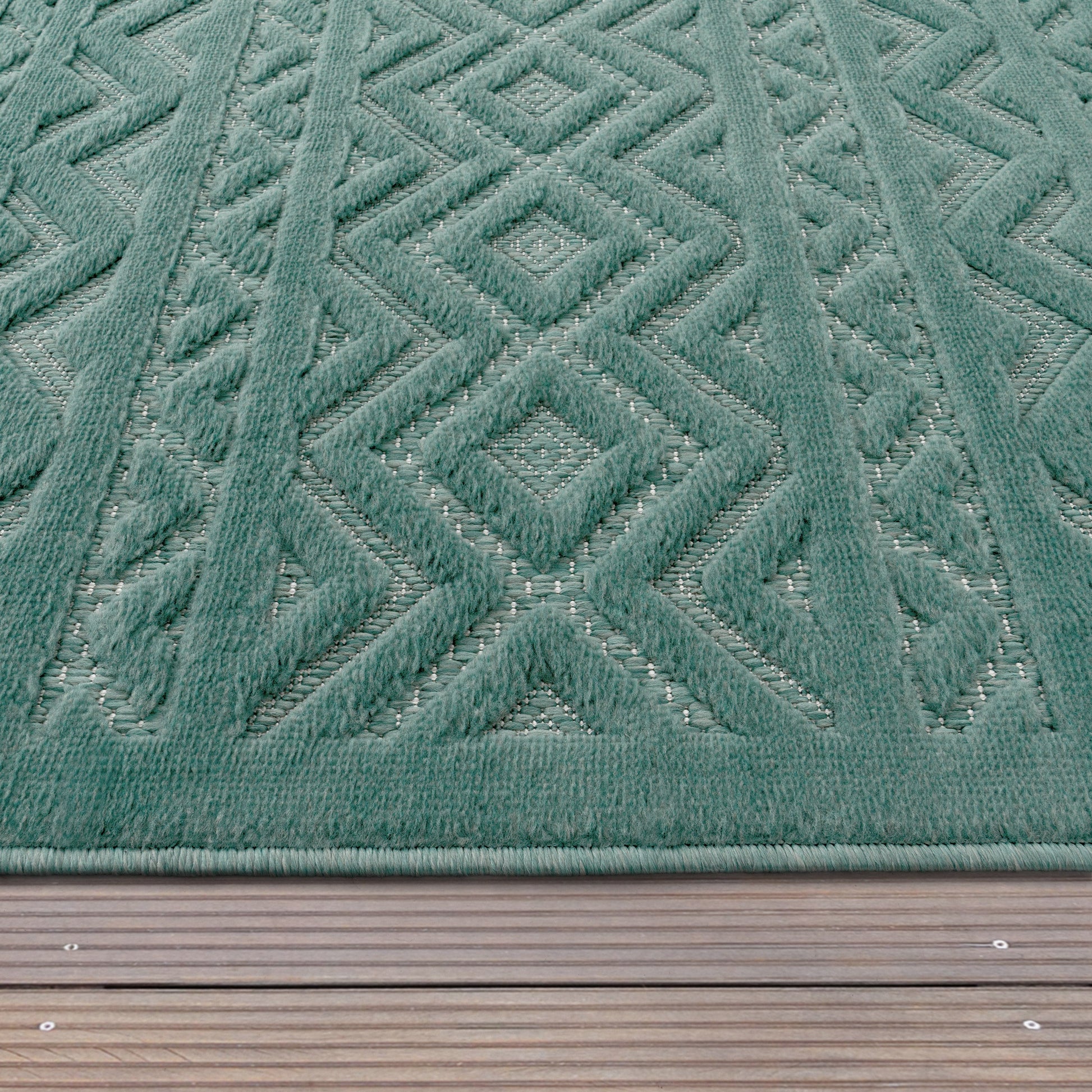 Indoor Outdoor Rug Livorno Boho High-Low Pattern In Turquoise