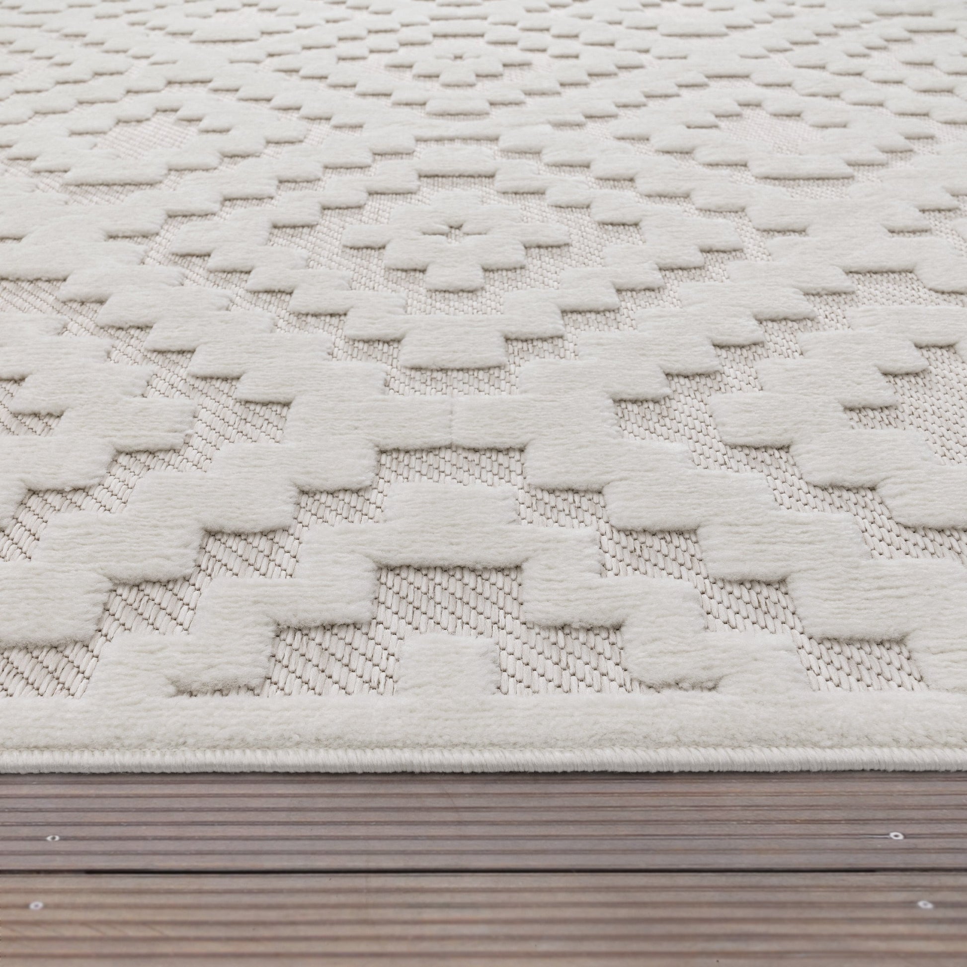 Indoor Outdoor Rug Livorno Trellis High-Low Pattern In Cream