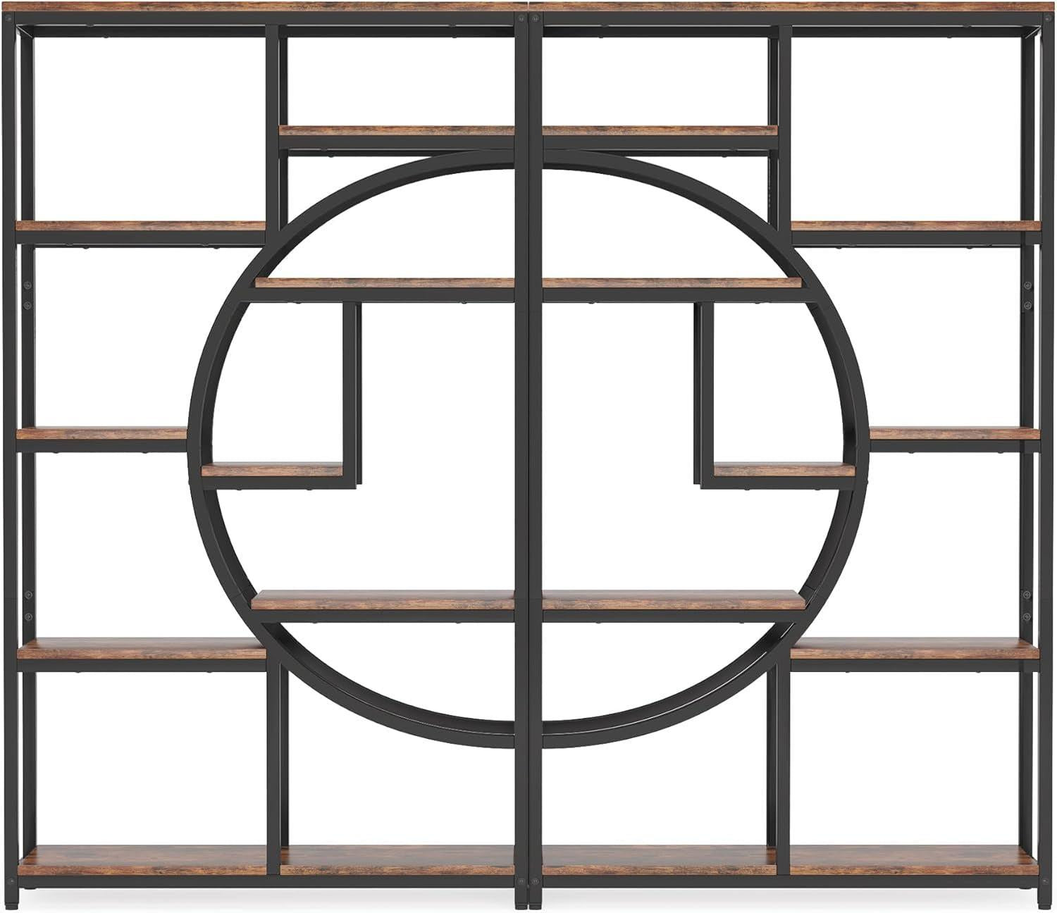 Transform your space with an industrial 5-tier etagere bookcase that blends rugged black metal with warm rustic brown boards and a distinctive half-moon silhouette. This freestanding unit turns everyday storage into a design feature for books, plants, and decor.