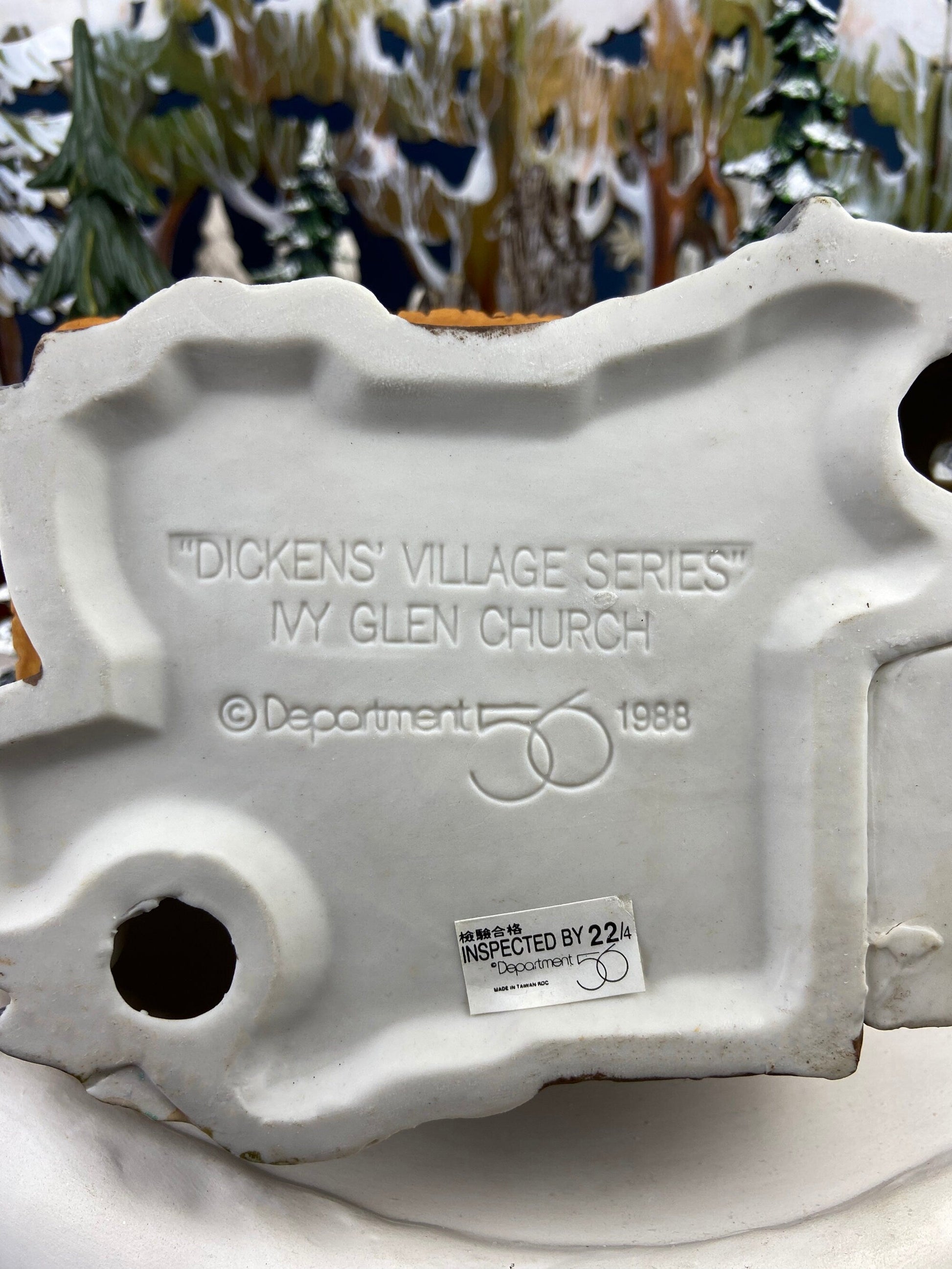 Ivy Glen Church by Department 56. Dicken's Village Series. Porcelain Illuminated House. Christmas Village Accessories. Light Kit Included. Additional Free-standing Islands, Trees and Accessories are not Included in price.