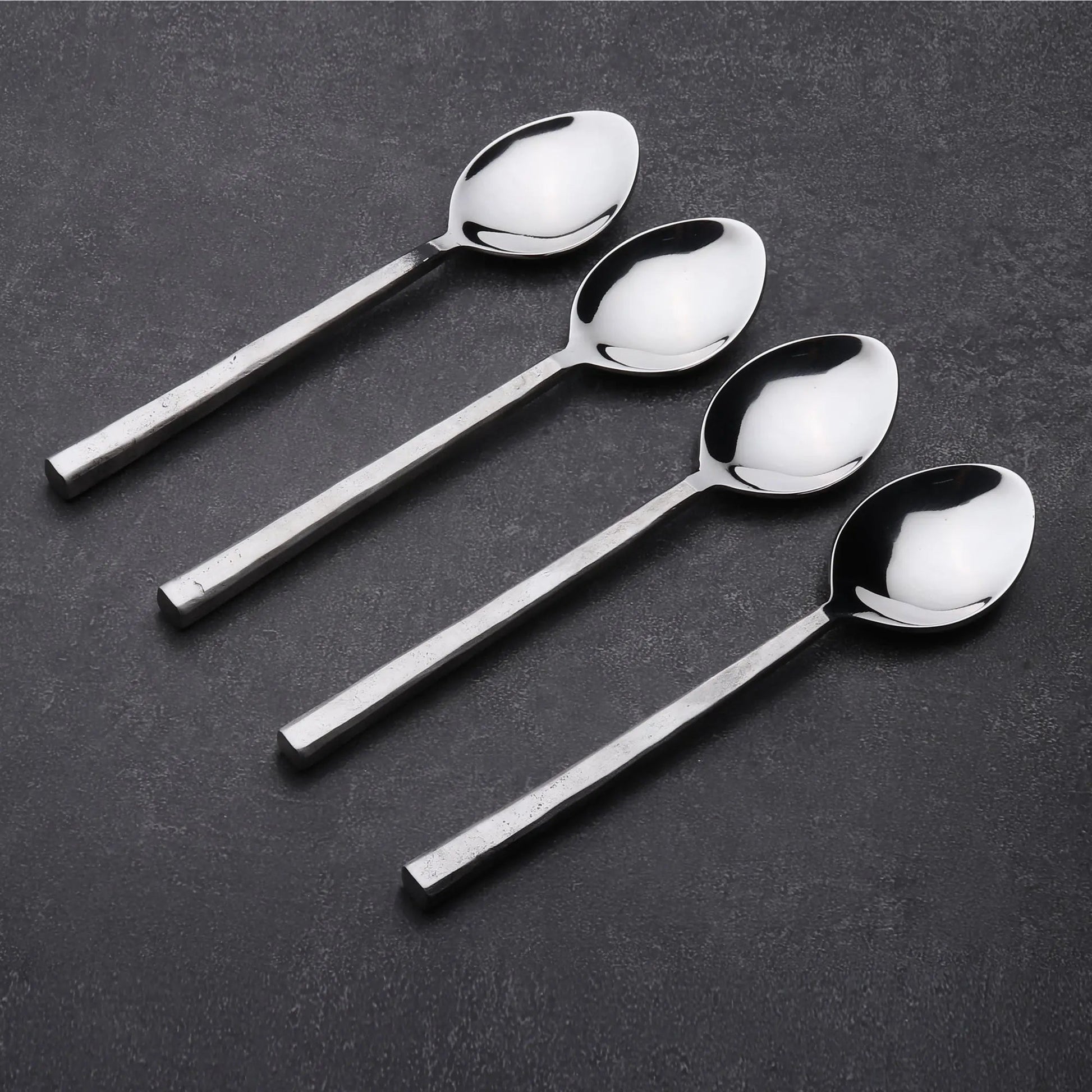 Bring a sleek industrial look to your dessert table with our Jason Table/Dessert Spoon Set. Raw nascent steel handles lend an organic look to each spoon and mirror-polished utensils guarantee a chic, contemporary table setting.