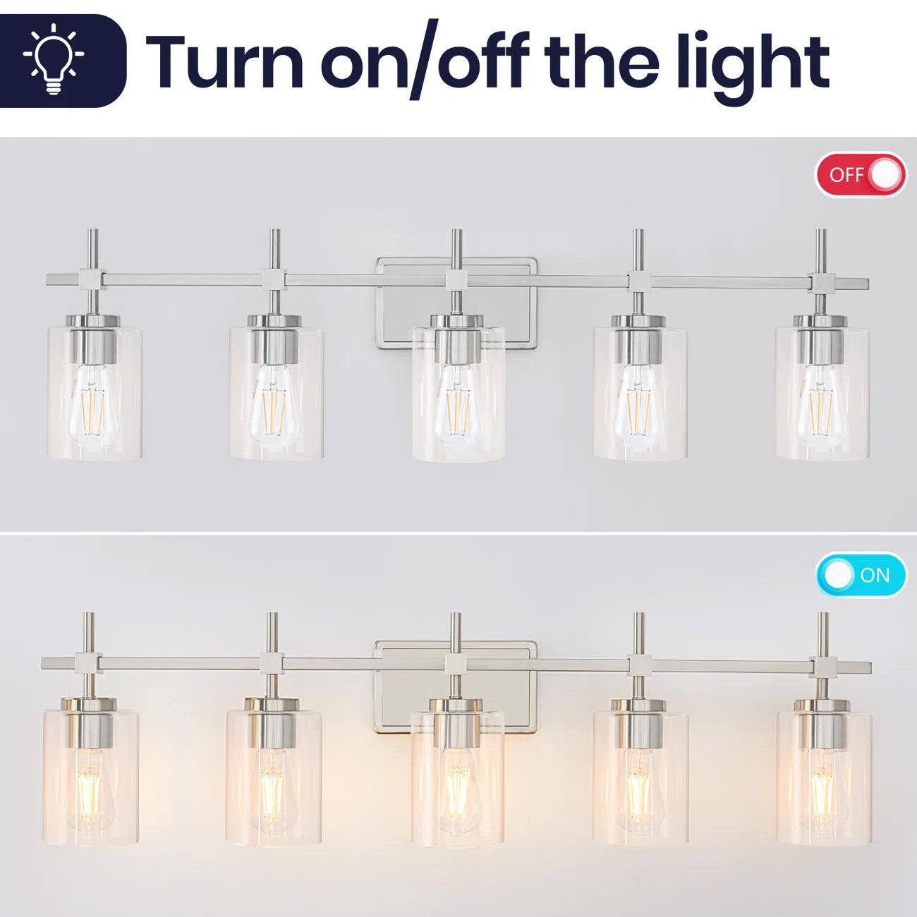 Jasper Modern Brushed Nickel & Black Clear Glass 5-Light Bathroom Linear Vanity Light