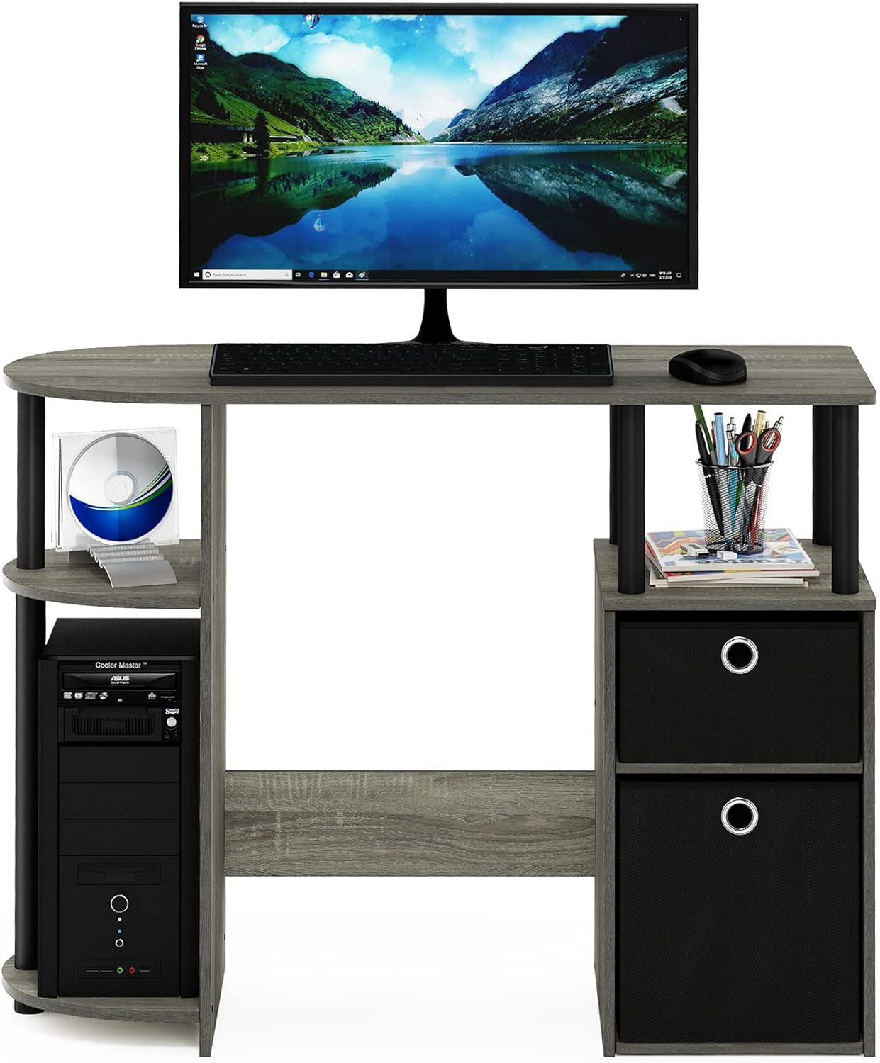 Jaya Simplistic Computer Desk CPU Shelf Oak Grey Black