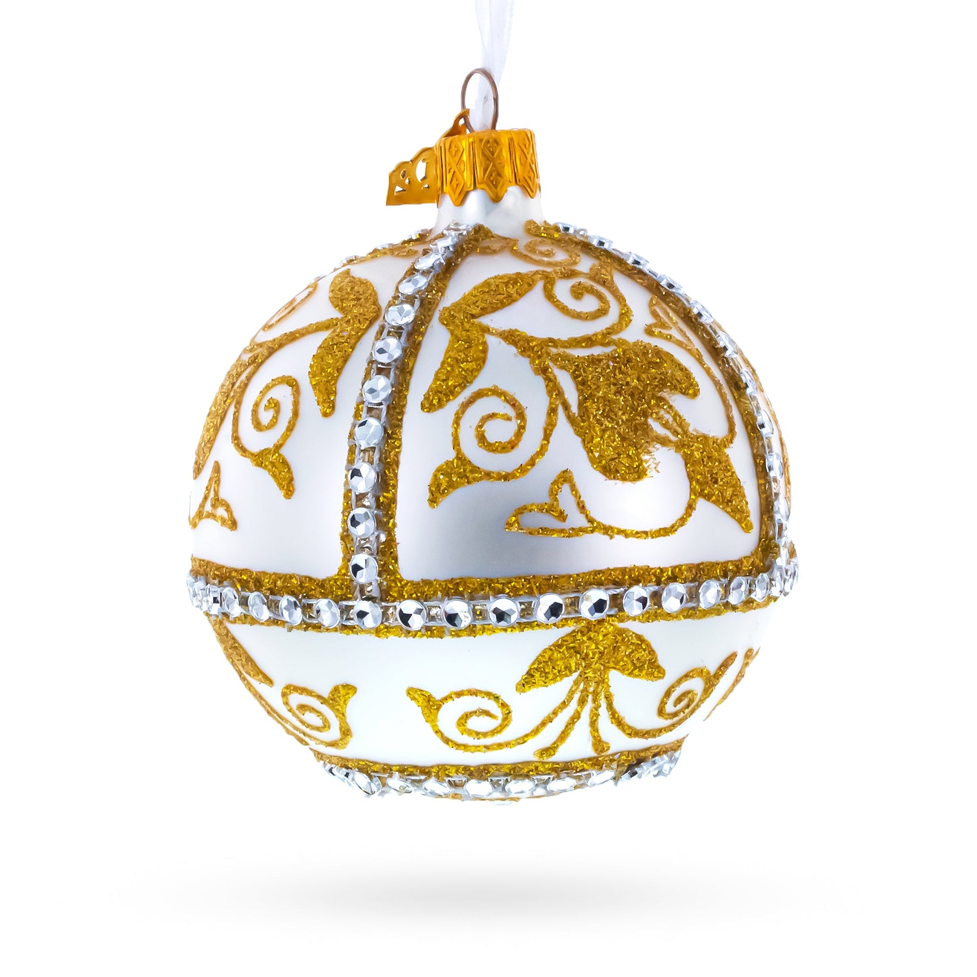 Jeweled Golden Chandelier on Silver Glass Ball Christmas Ornament 3.25 Inches