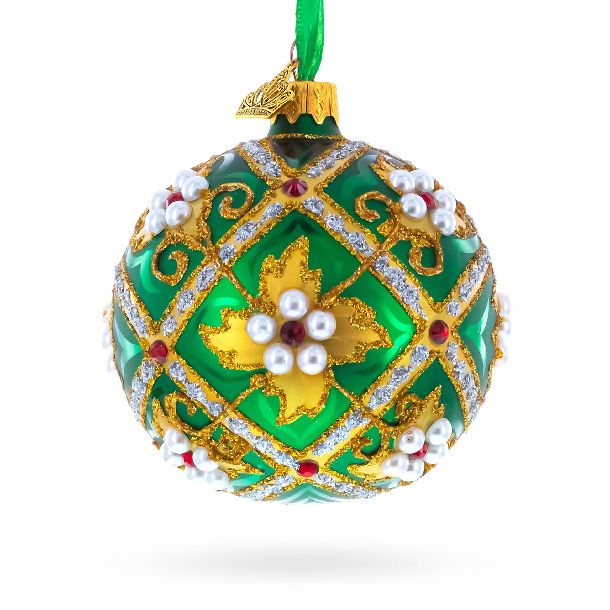 Jewels on Green Glass Ball Christmas Ornament 3.25 Inches