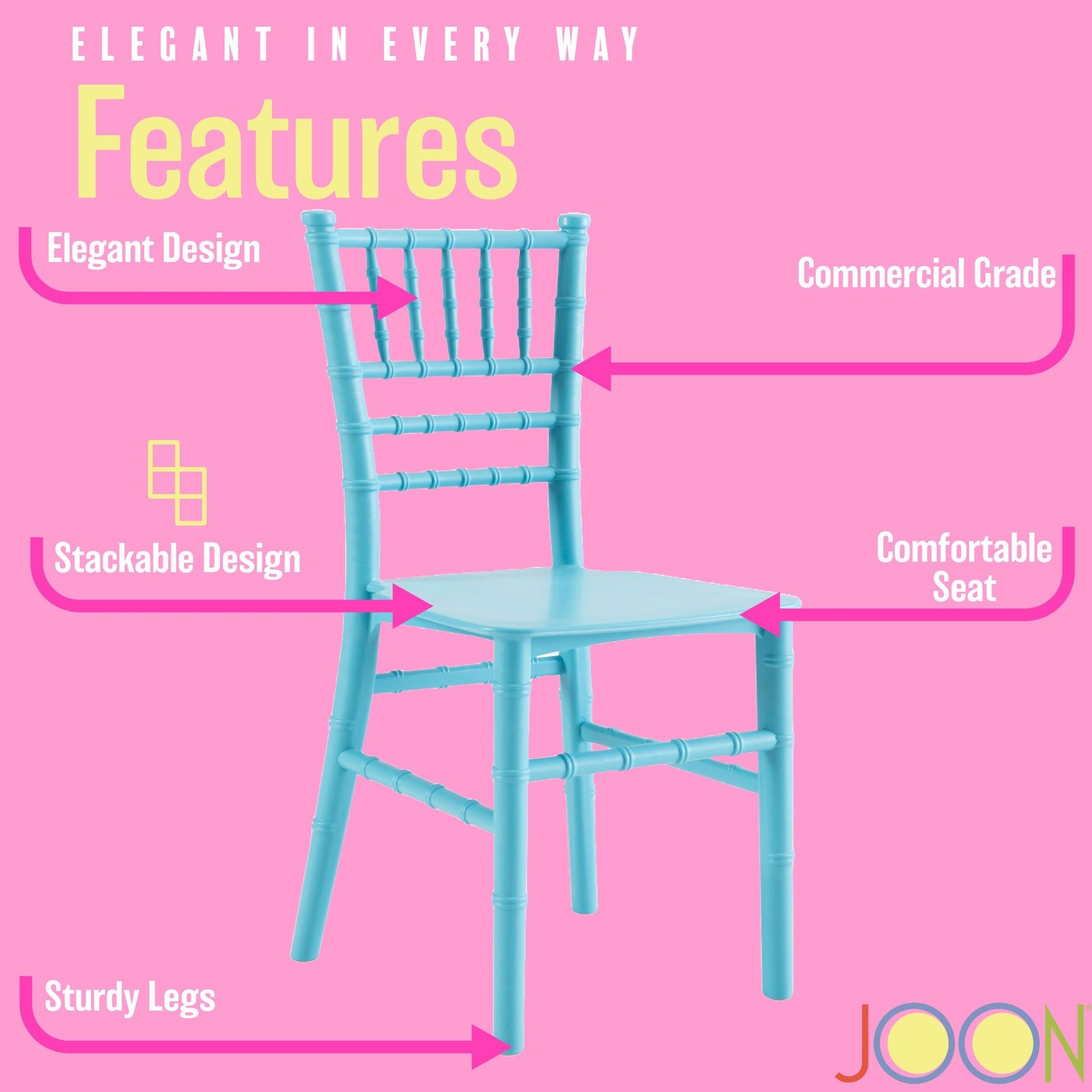 Elevate your kids’ parties, playrooms, or classrooms with these stylish and durable JOON Tiffany Chiavari Chairs. These chairs are perfect for adding a touch of elegance and sophistication to any event, while also being lightweight and easy to clean.